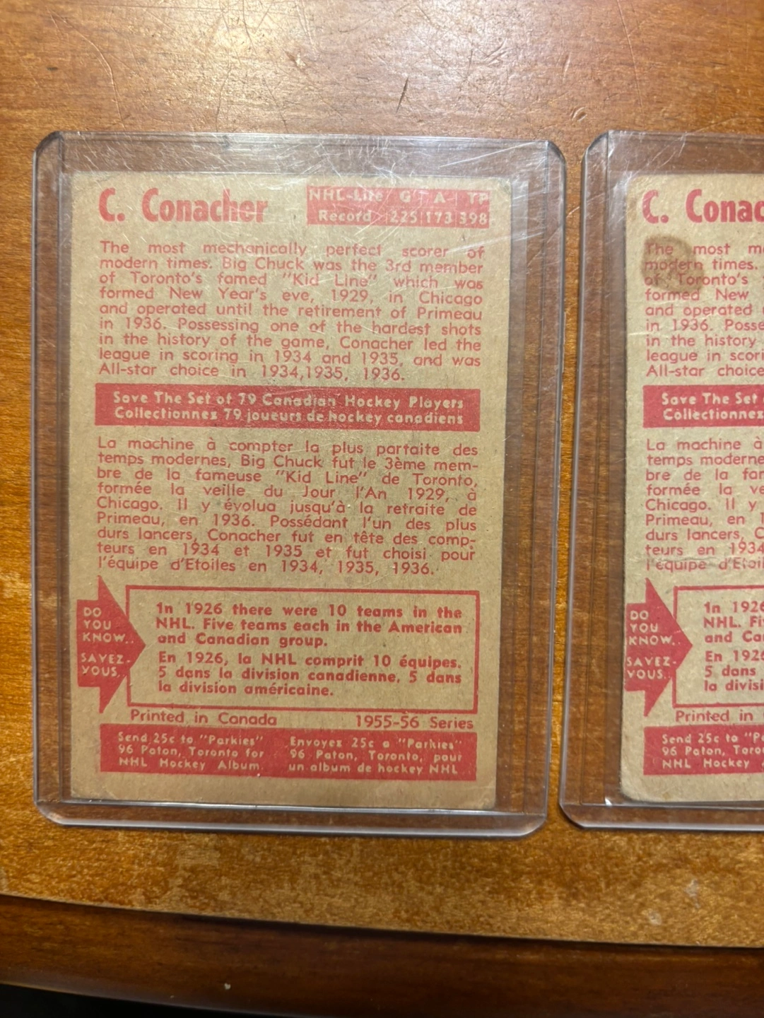 2 CHARLIE CONACHER 1955-56 Parkhurst Card #26 - Original Owner