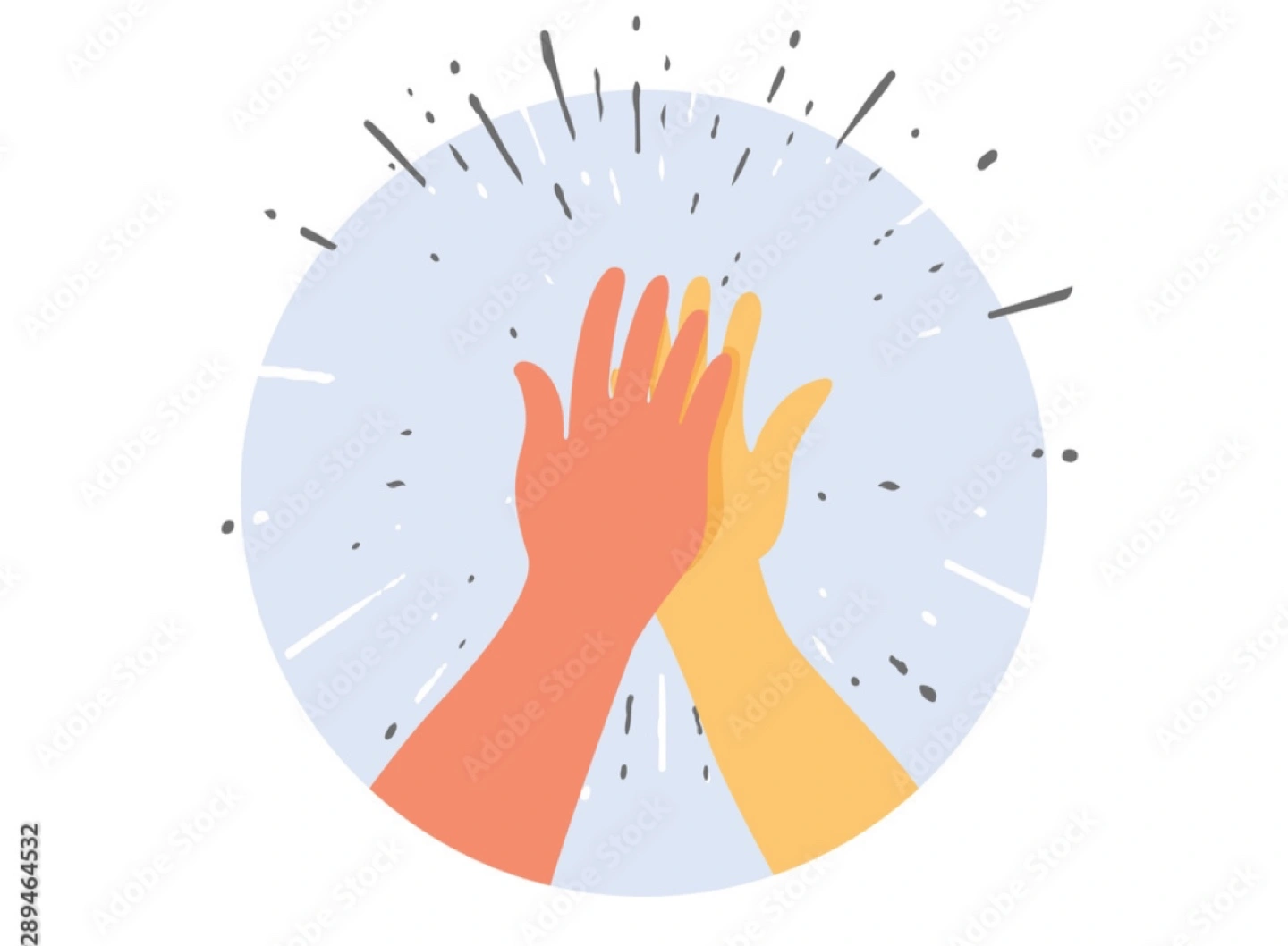 Two hands giving each other a high five. Simple cartoon style, in a circle on a white background. - let’s do E-high-five !