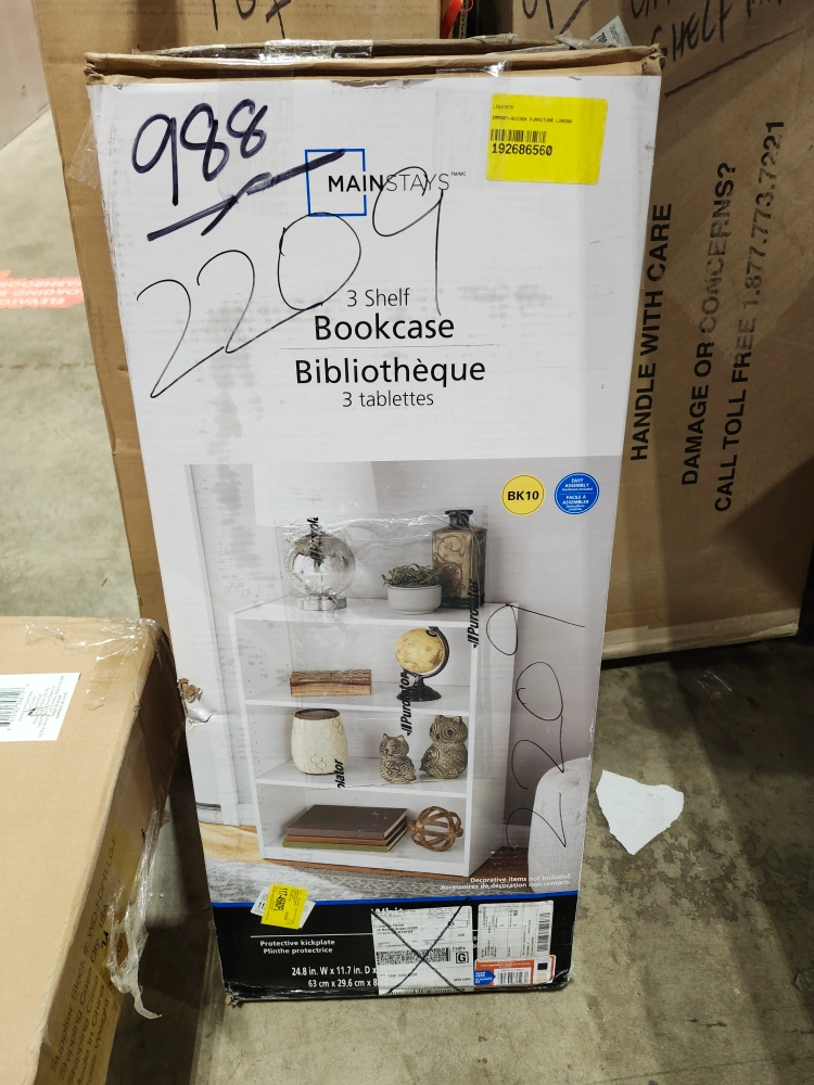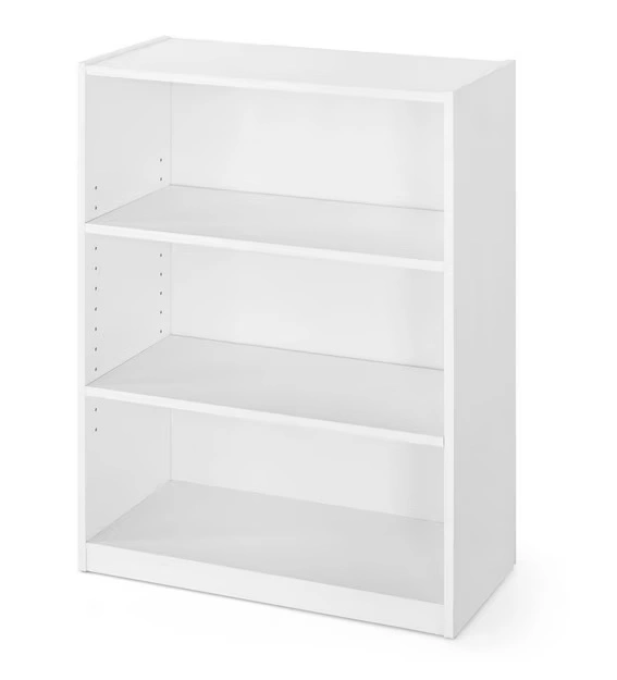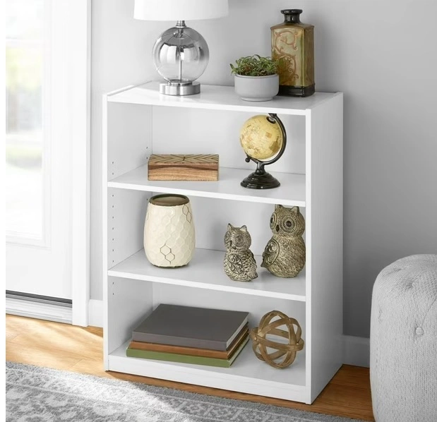 Add the sleek Mainstays 3-Shelf Bookcase to almost any room for a functional and stylish look. This sturdy storage unit has a closed-back design with one fixed shelf that holds up to 50 pounds, and two adjustable shelves that can support up to 35 pounds each. Easily and quickly assembled, this attractive bookshelf can provide a useful storage option for any office, living room, family room, den, or almost anywhere else. The Mainstays 3-Shelf Bookcase stands just over 31 inches tall and is perfect for small and medium rooms where smart, efficient storage is needed. The two adjustable shelves can accommodate everything from trade paperbacks to large folios to deliver a functional bookcase perfect for small libraries and collections. Available in White, True Black Oak and Birch finishes, this charming storage unit can also be used for beautifully displaying photography, small artwork, collectibles, or for just keeping much needed items at hand.