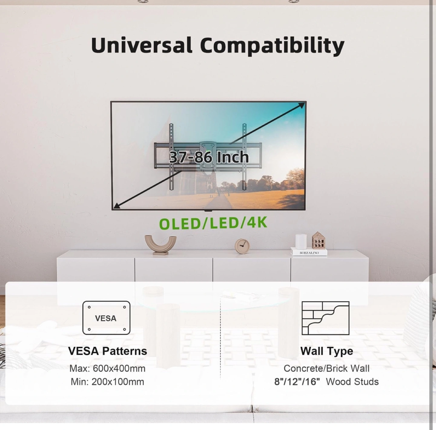 USX MOUNT TV Wall Mount for Most 37-86 inch TVs Hold up to 120lbs, Full Motion Wall Mount TV Bracket Swivel and Tilt, TV Mount with Dual Articulating Arms Extension Max VESA 600x400mm, 16" Wood Studs