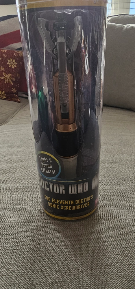 Unlock the Universe with the eleventh Doctor' Sonic Screwdriver! Light and sound effects! New 1.5v disc batteries required. In original packaging but open.