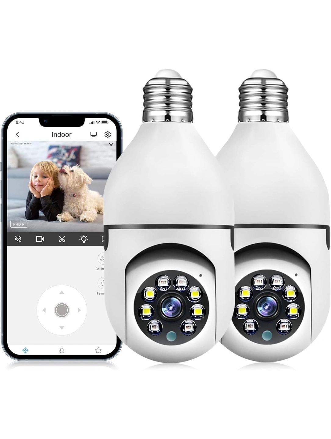 2PCS Light Bulb Security Camera Wireless Indoor, 3MP/2.4G WiFi Surveillance Camera, 360°Pan-Tilt Bulb Camera with Human Motion Detection&Alert/Two-Way Audio/Full Color Night Vision/Remote View