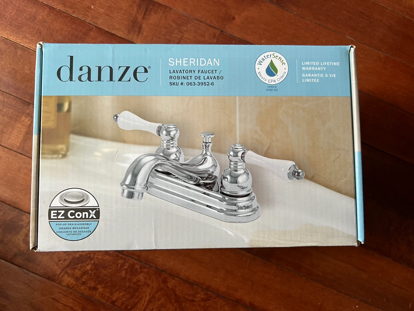 262Chrome finish, 4-in centres, pop-up drain assembly, WaterSense certified. Brand new in box