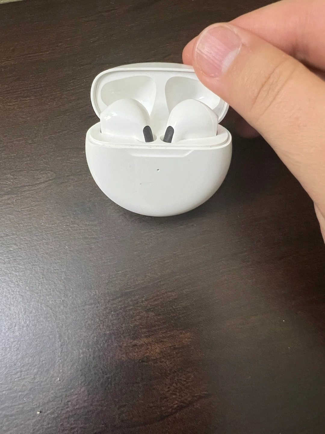White wireless earbuds with a charging and case. I used for audiobooks it works great for the works for 2hours without charging Price is negotiable and pick up only