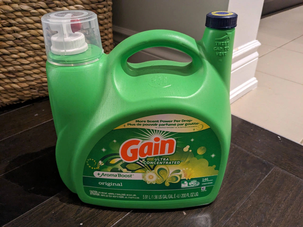 Green Gain laundry detergent with scent boost. Ultra concentrated, 200 fl oz or 5.91L