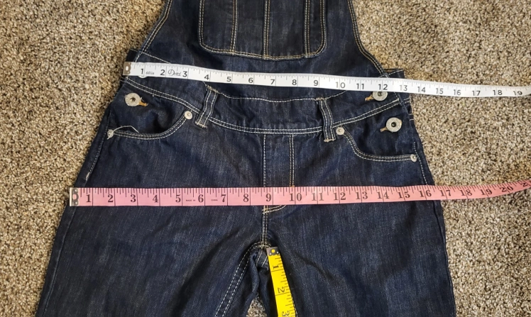 The overalls have pockets, making them practical and convenient. They are available in a girl's size 12 with a waist size of approximately 16 inches and an inseam of 27 inches. Machine washable for easy care, these overalls are a must-have for any child's wardrobe.