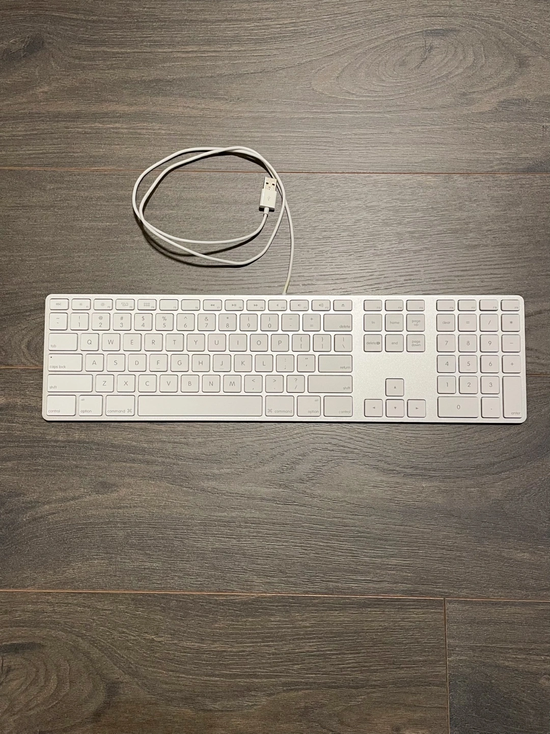 In excellent, and extremely clean condition. I have cleaned the keyboard throughly and carefully with air duster and also disinfectant wipes.