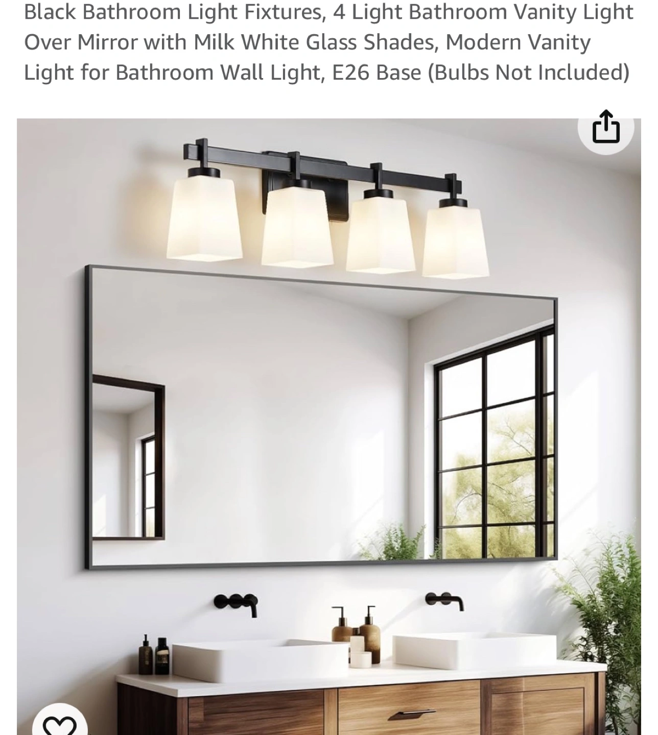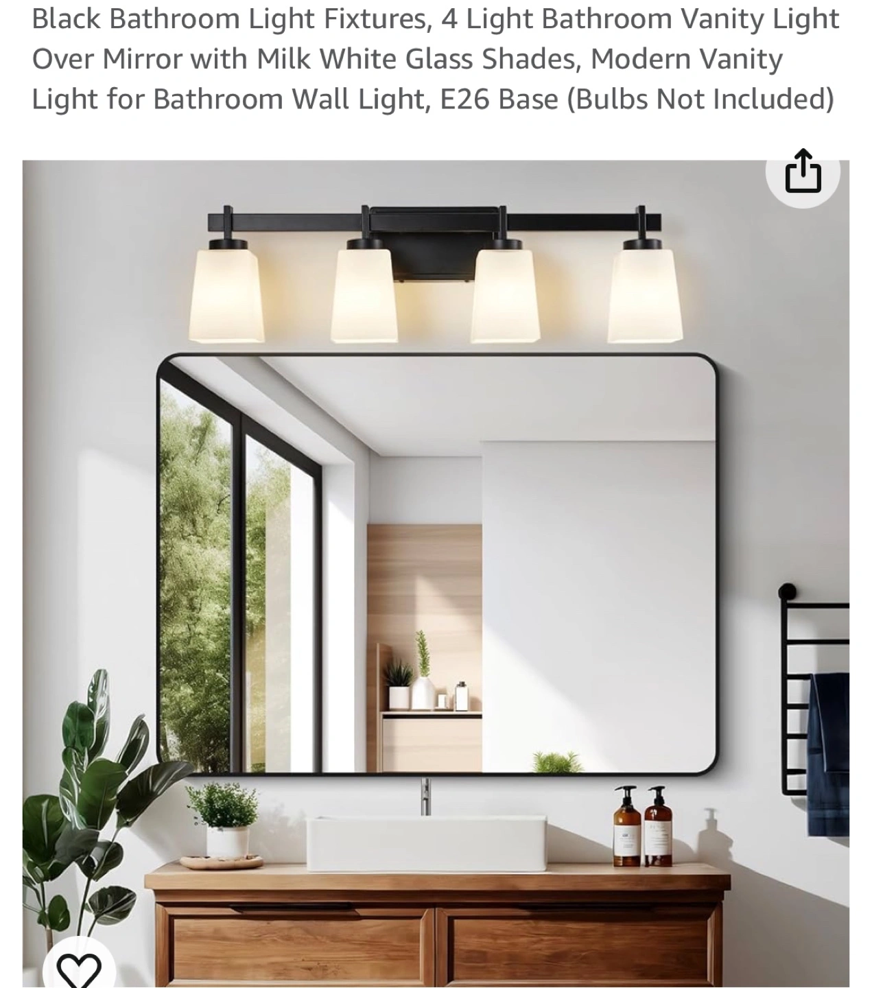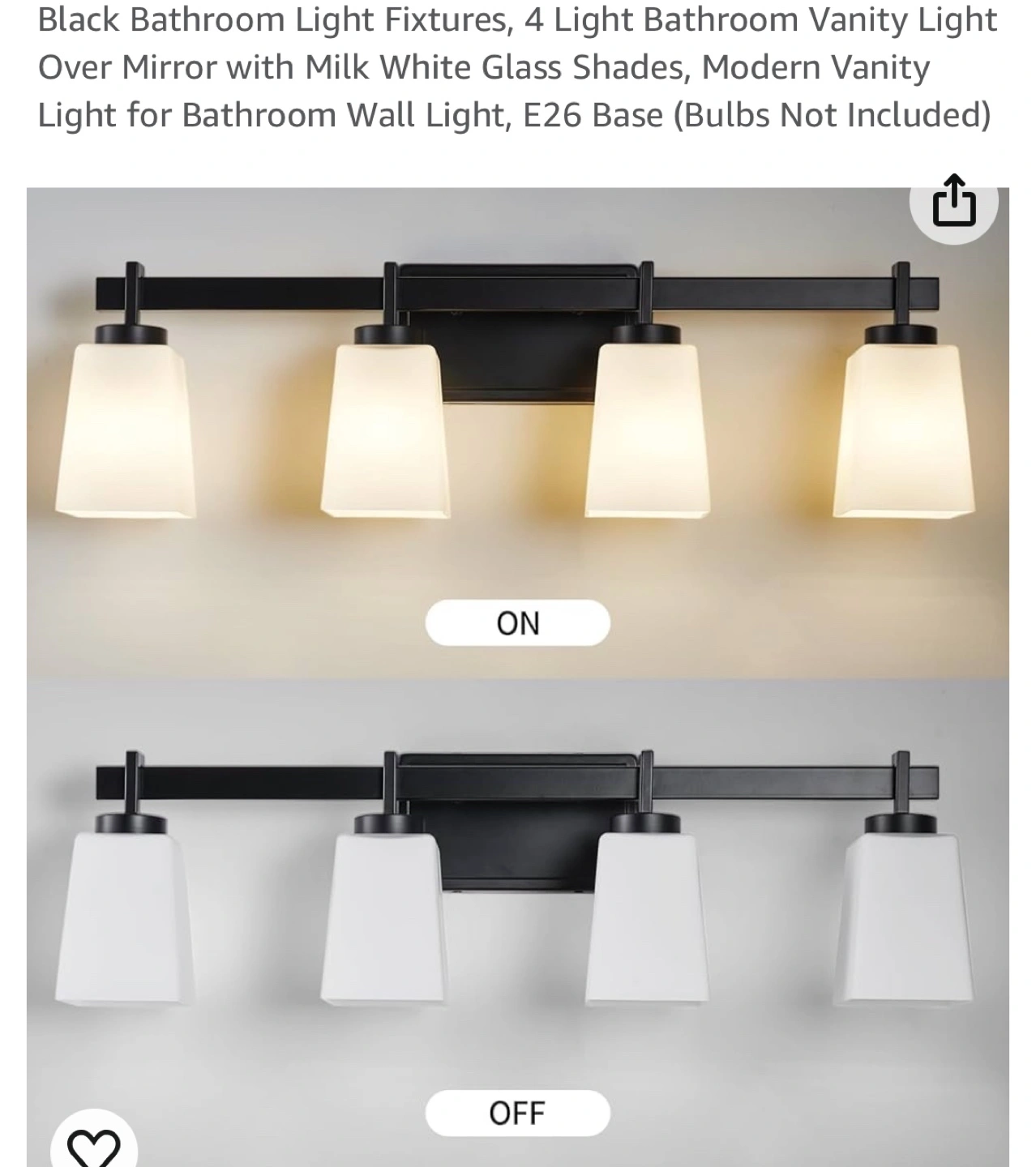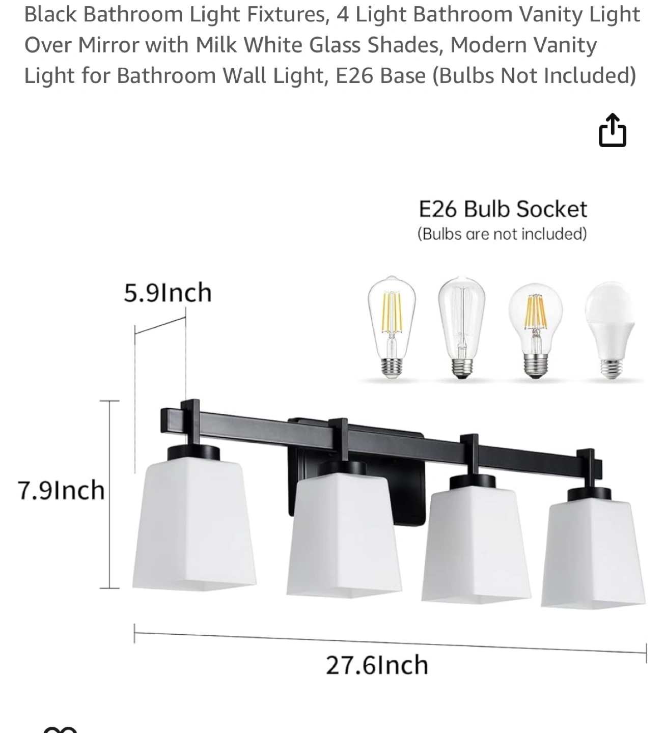 145Black bathroom vanity light fixture with frosted glass shades. Includes mounting hardware.