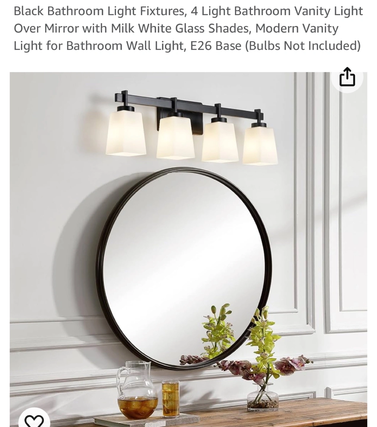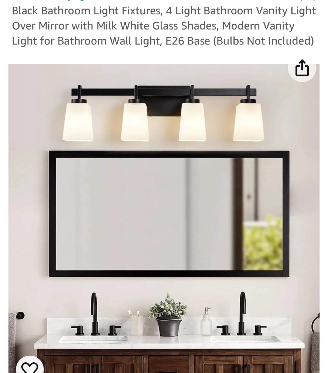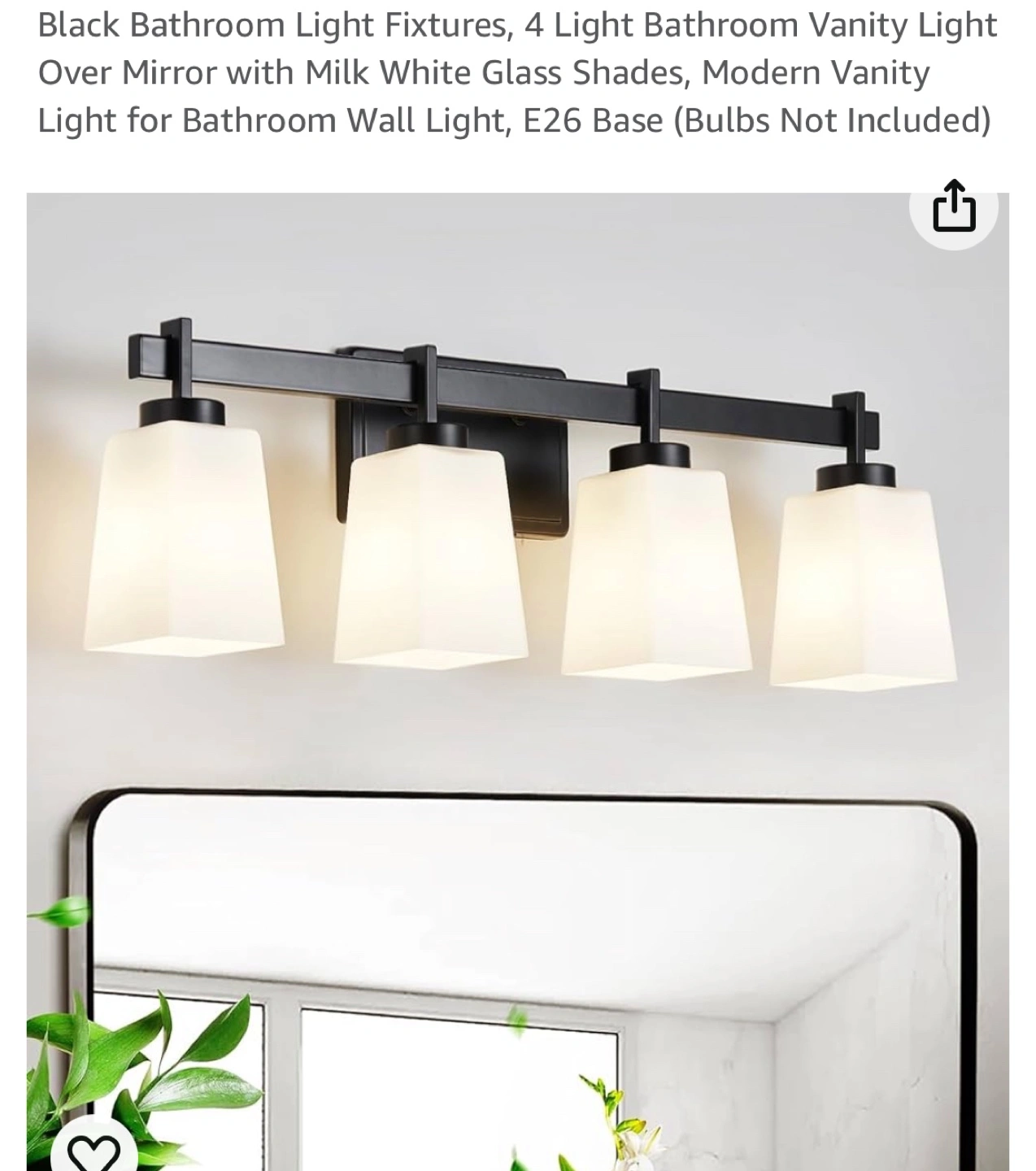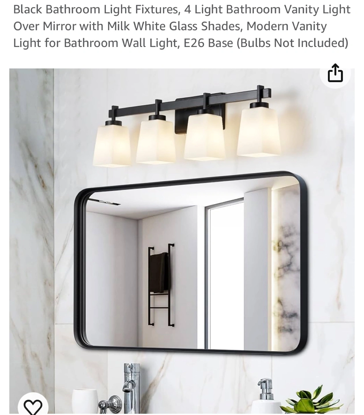 145Black bathroom vanity light fixture with frosted glass shades. Includes mounting hardware.