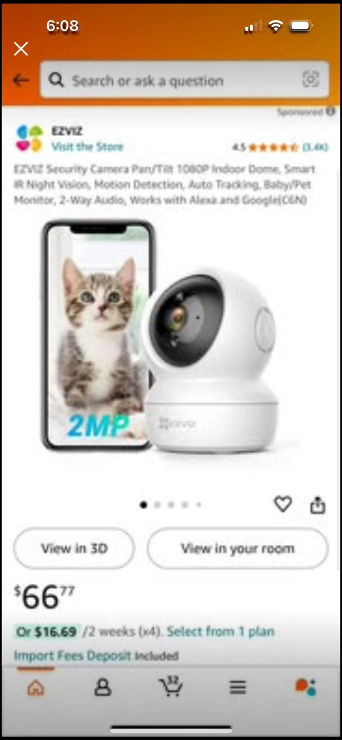 EZVIZ WiFi Security Camera Outdoor IP67 Waterproof, 1080P with Color Night Vision, AI Person Detection, 2-Way Audio, Motion Alerts, H.265 Video Compression EZVIZ 2K+ Indoor Camera PT, Auto Tracking, IR Night Vision, Motion Detection Alert, Baby Monitor,Two Way Talk, Sleep Mode | CP1 4MP EZVIZ Battery Camera Indoor, Small WiFi Camera 1080P Motion Human Detection, Two Way Audio, 5M Night Vision, Magnetic Mount,Type C Port, Baby Camera,2.4GHz, Google Alexa Control |CB2 Black $50Each or three for $120