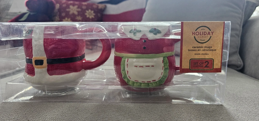 Holiday Market Santa and Mrs Claus Ceramic Mug Set