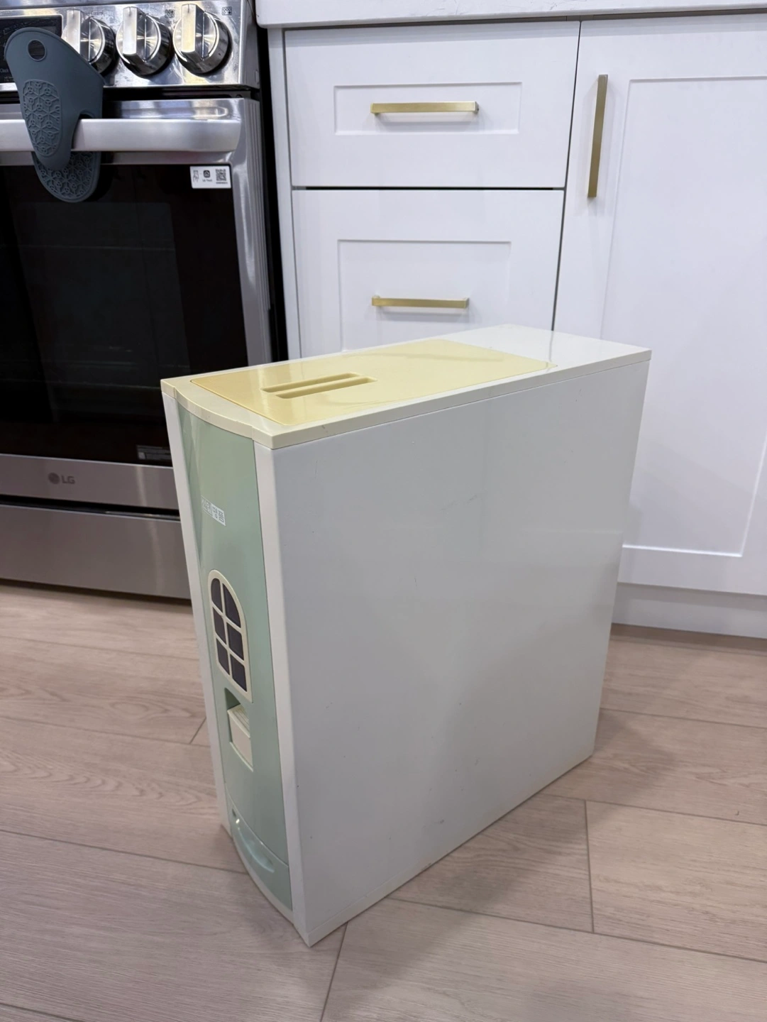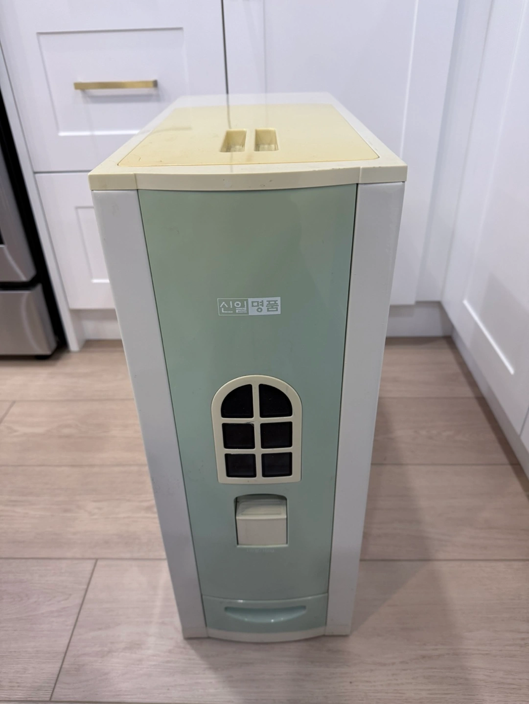 7740lb Rice dispenser with a drawer. Features a window to see how much rice is left. Working well, in good condition to use.