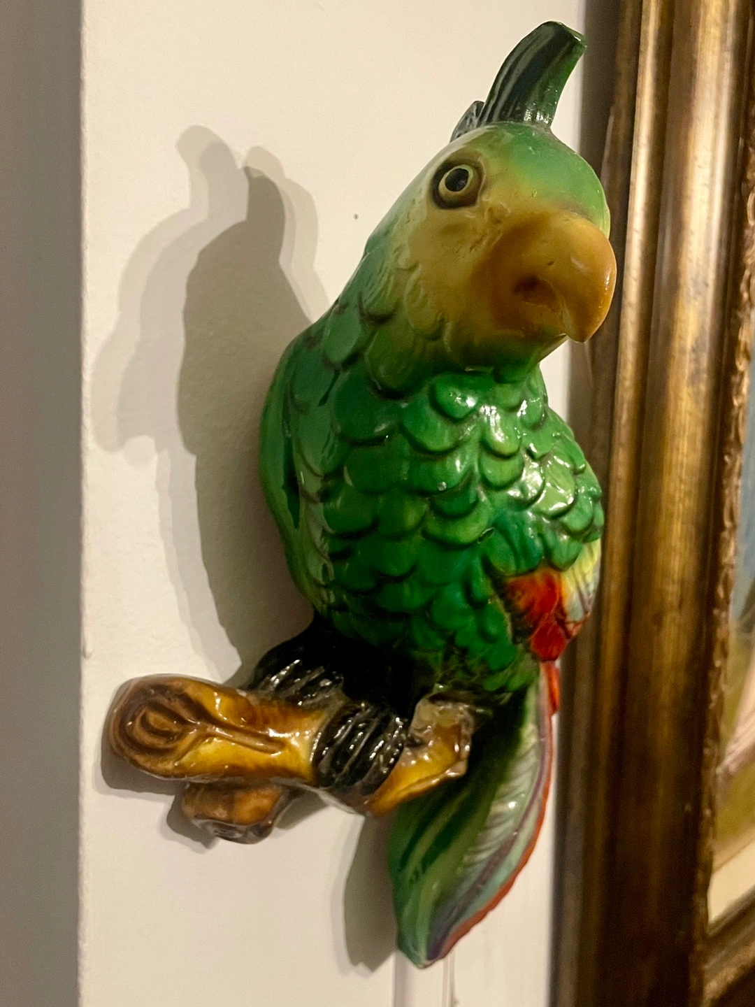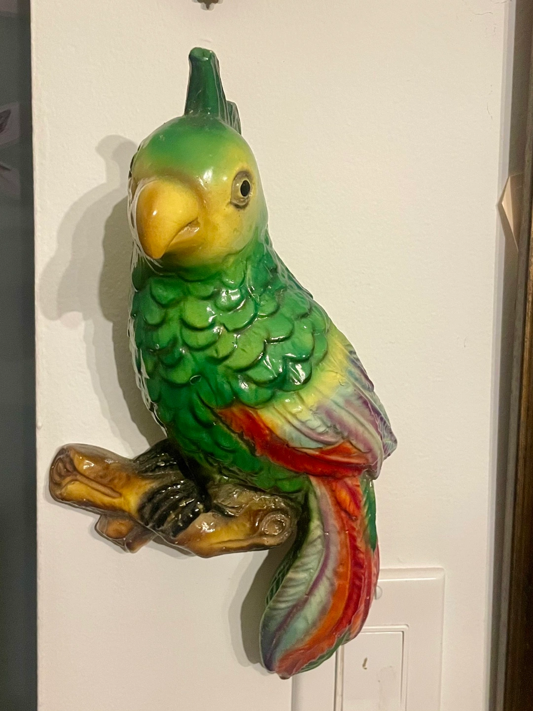 Wonderful 60s chalkware wall sculpture of a parrot, made in Canada. 9 1/2” tall Great addition to your gallery wall! Pick up around Sherbourne/ Wellesley Could ship/ deliver for a fee