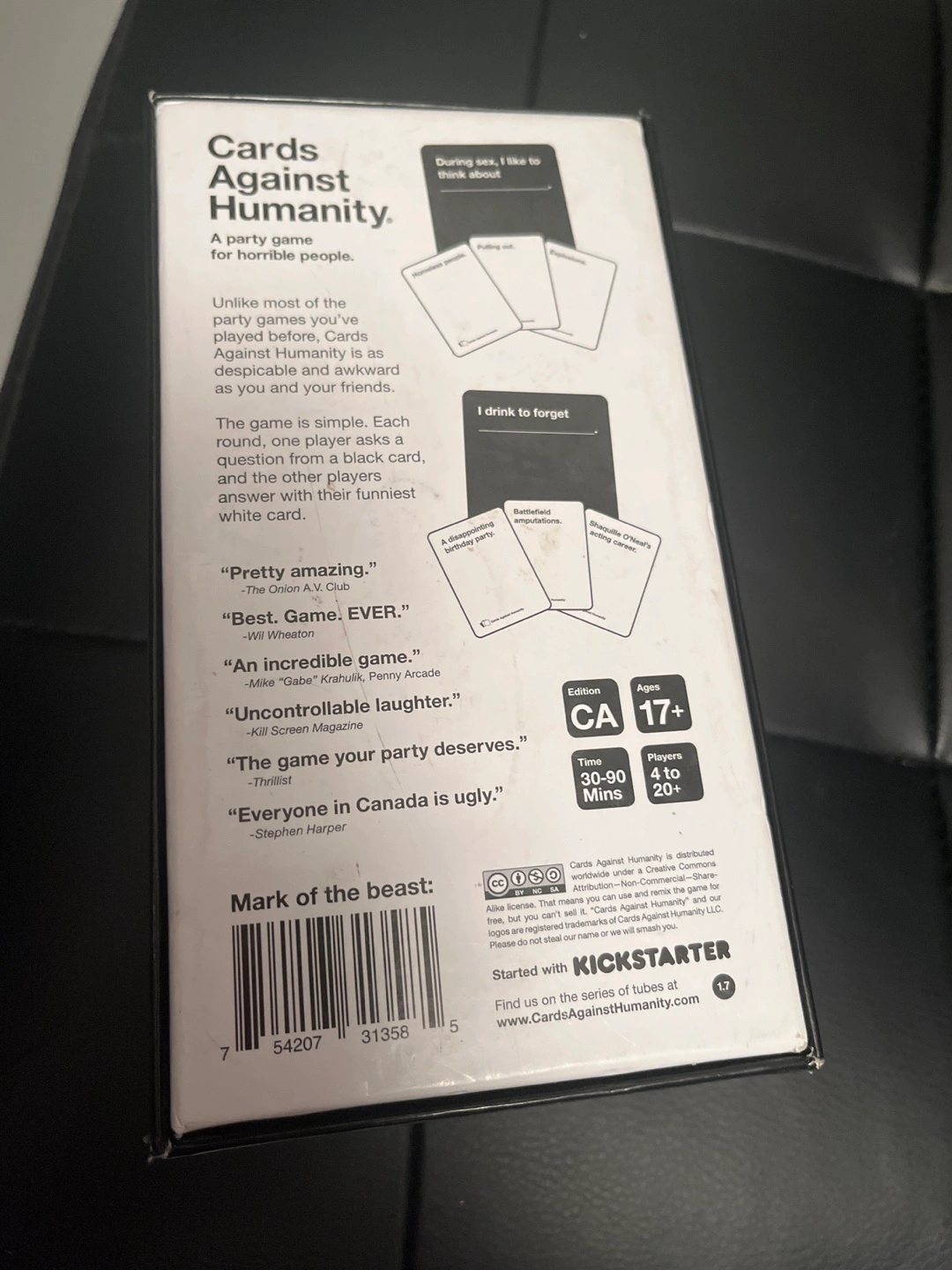 USED ONCE! A party game for horrible people. Canadian edition.