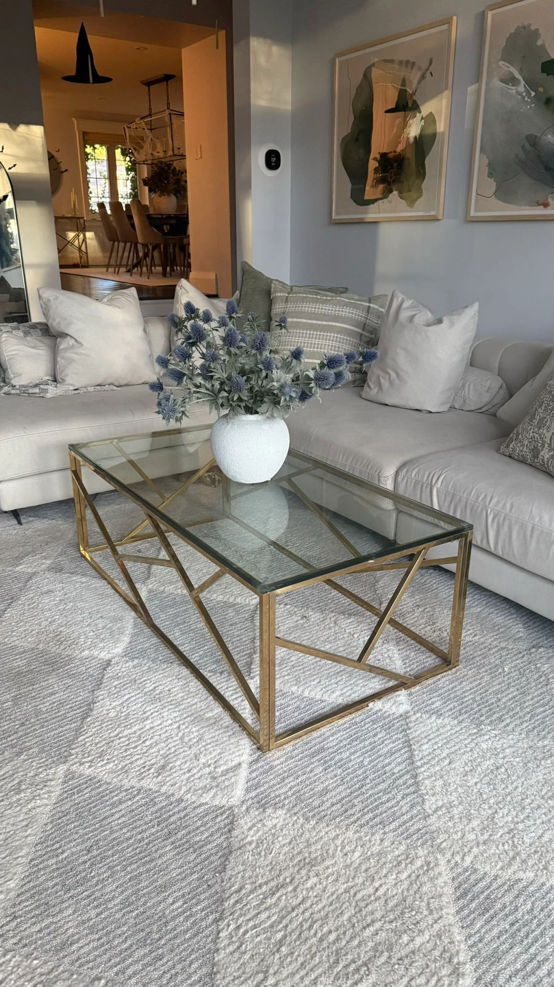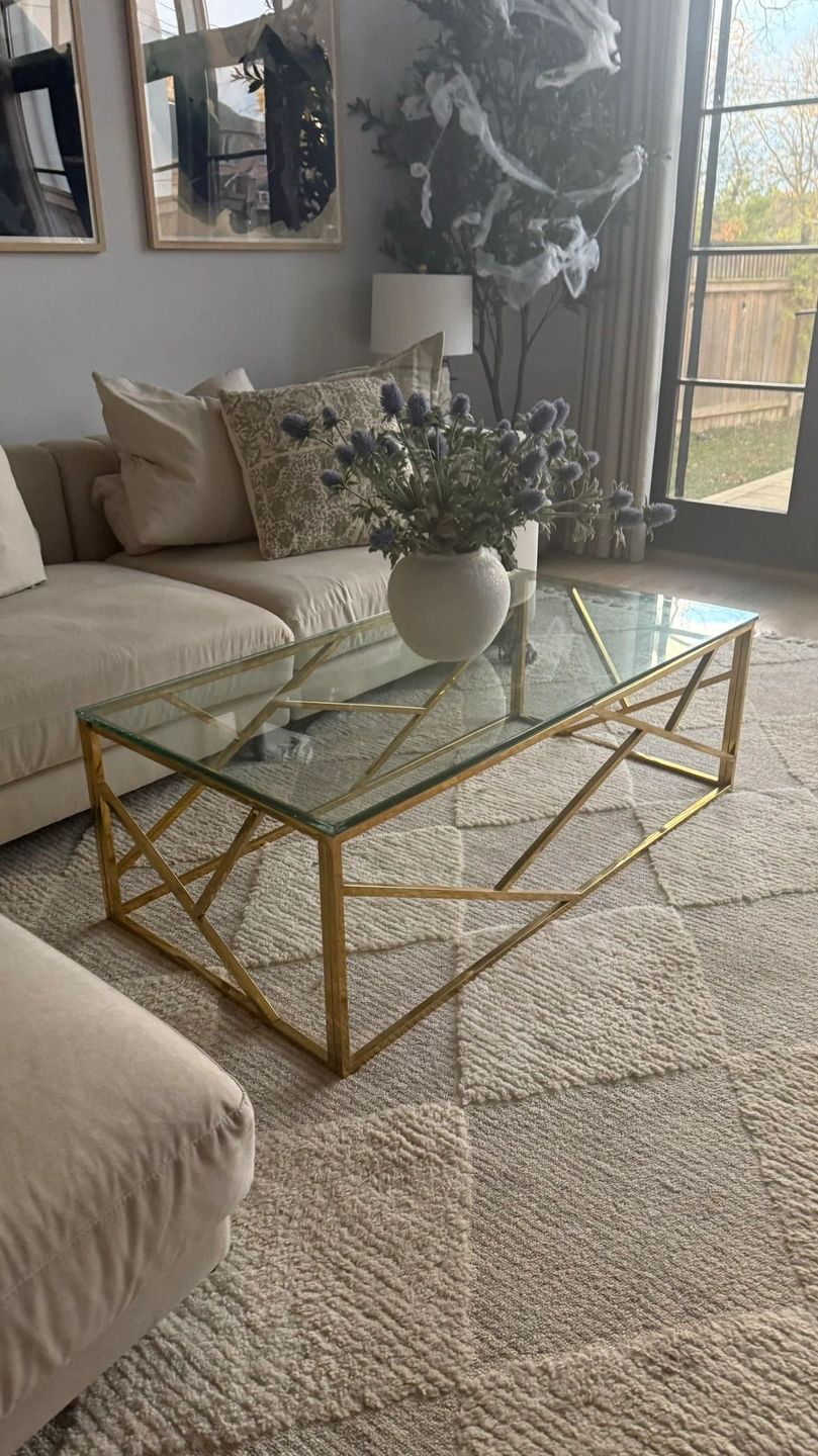 Only “imperfection” is that the glass top is ever so slightly miscut so one corner overhangs over the metal base by less than an inch. It arrived that way from the manufacturer and it didn’t bother us