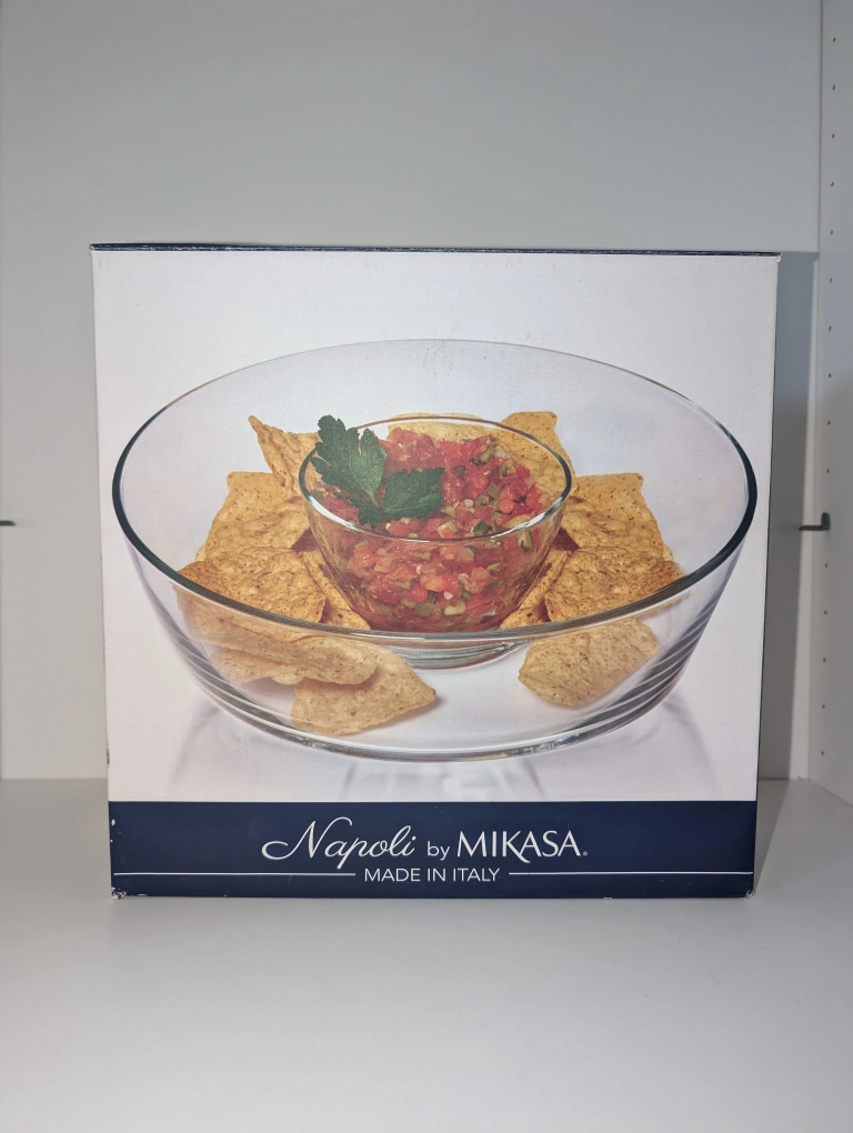 42The Napoli Glassware Collection, by MIkasa, features high-quality, long-lasting serveware, perfect for any occasion. Crafted of glass, each stunning piece is decorative and functional. This chip & dip combines sleek sophistication with functionality. Never Used Dishwasher safe. Glass chip n dip measures 11 inch diameter. Available for Pick up / Meet Up in Major Mackenzie and Islington area of Woodbridge.