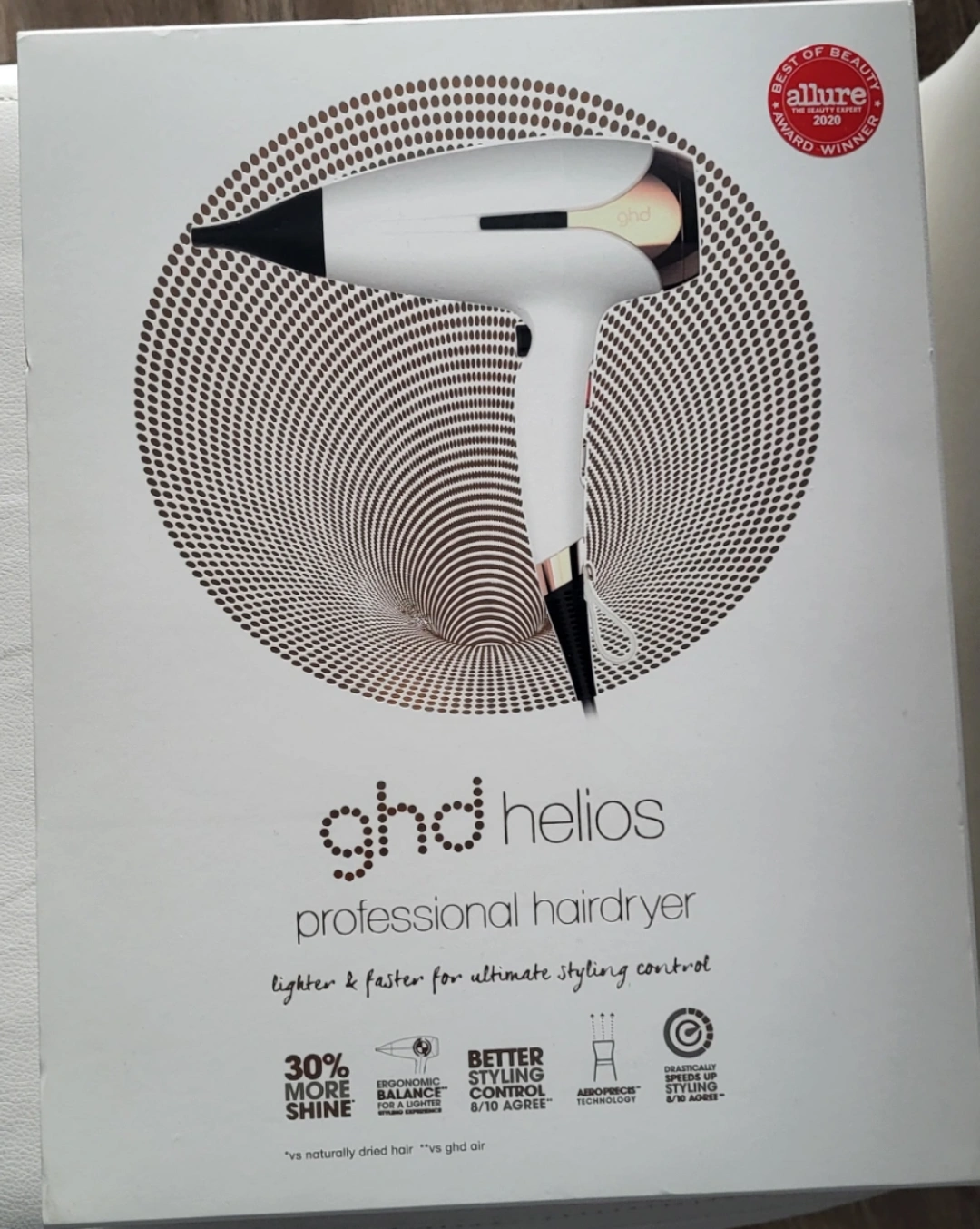 ghd white and rose gold professional hairdryer. Comes with original box and nozzle attachment.