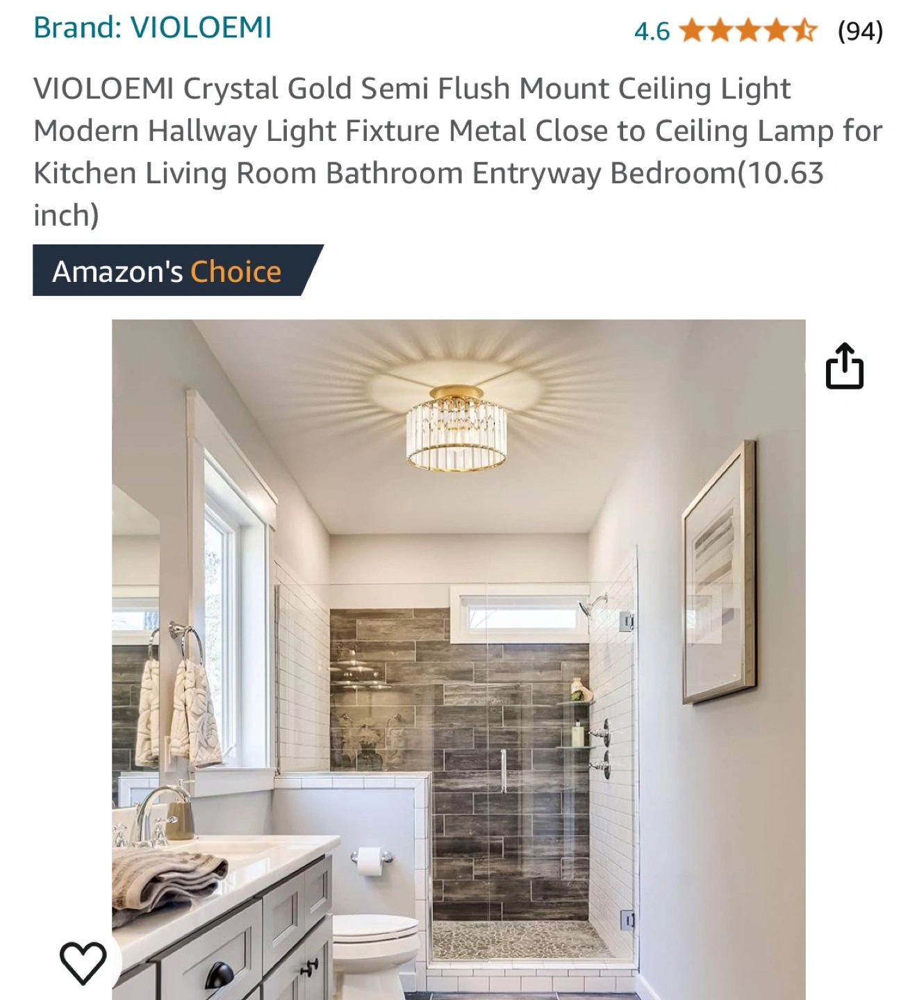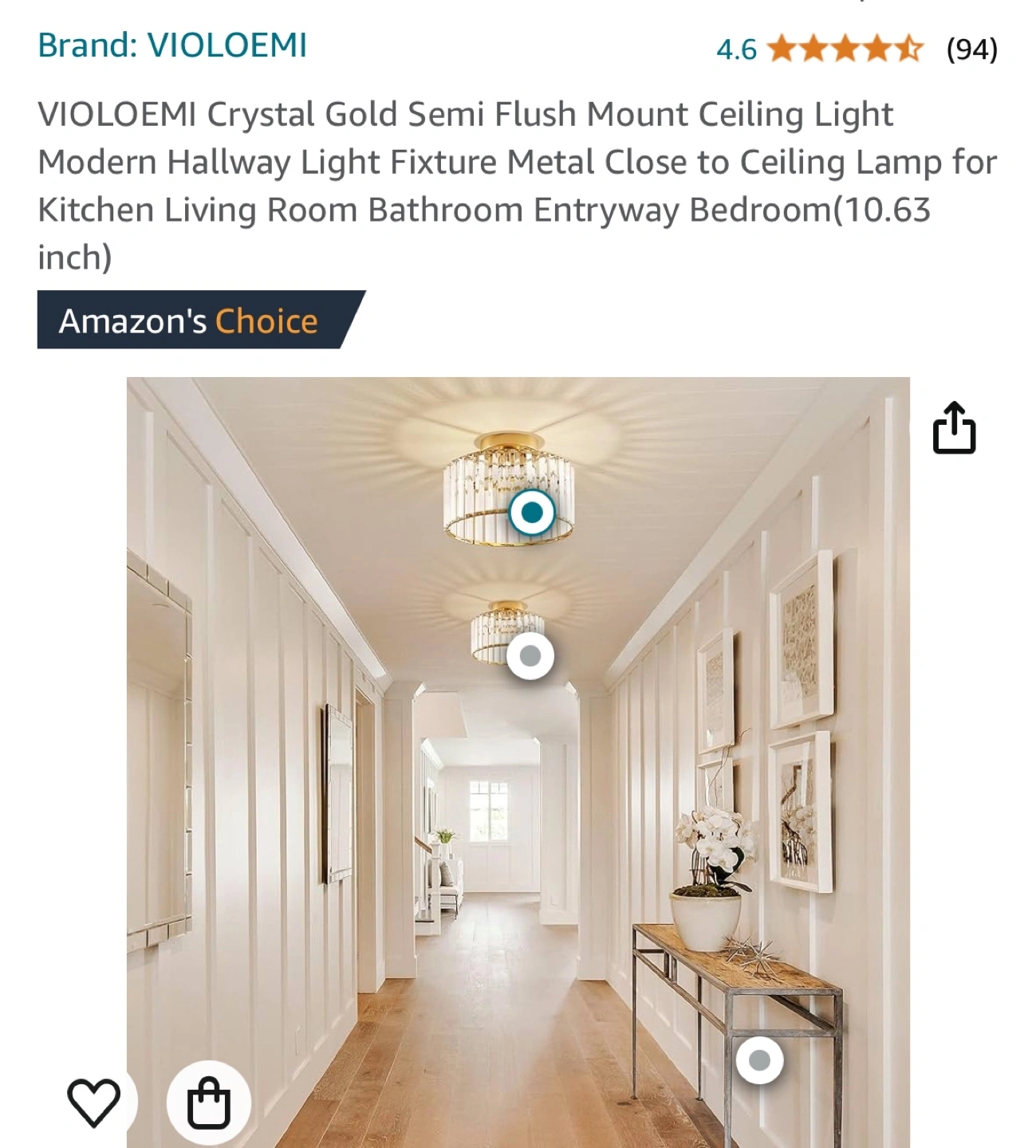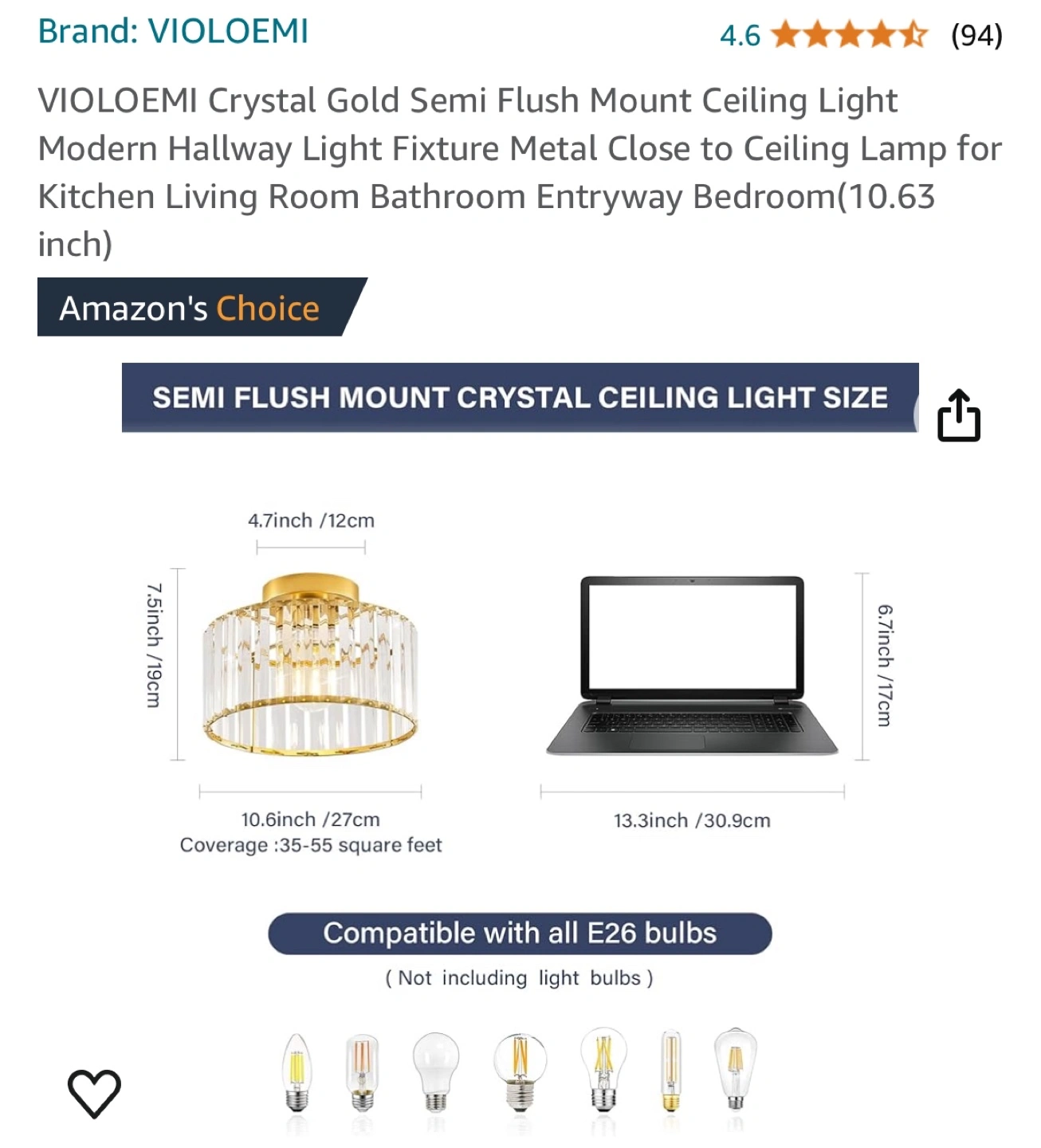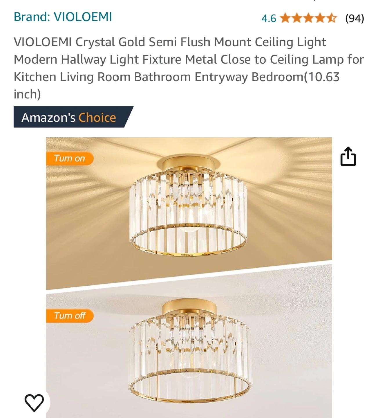 145Gold semi-flush mount ceiling light fixture with clear crystal accents. Open bottom with an E26 bulb socket.