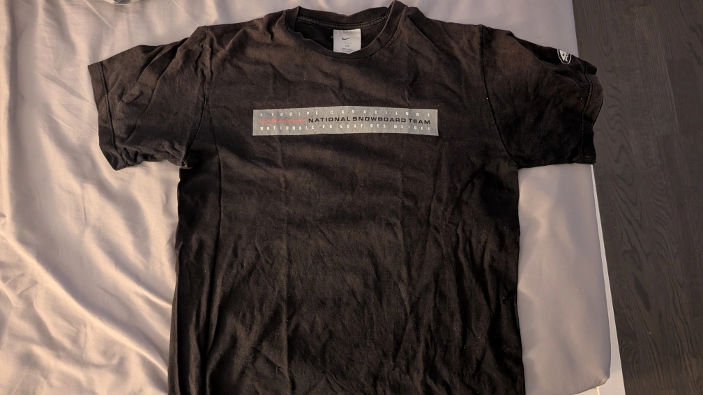 Canadian National Snowboard Team black tee; part of Nike's ACG collection.