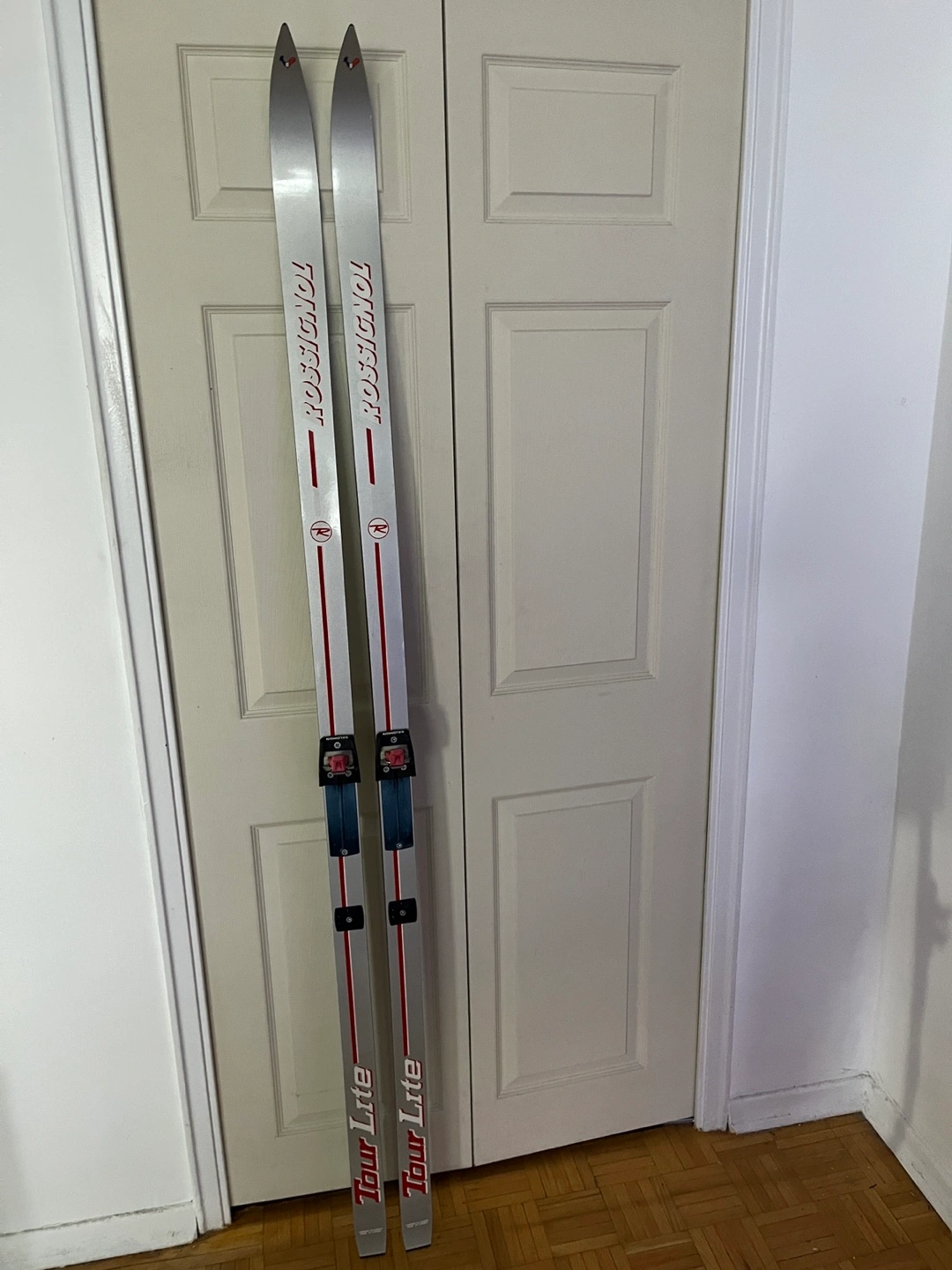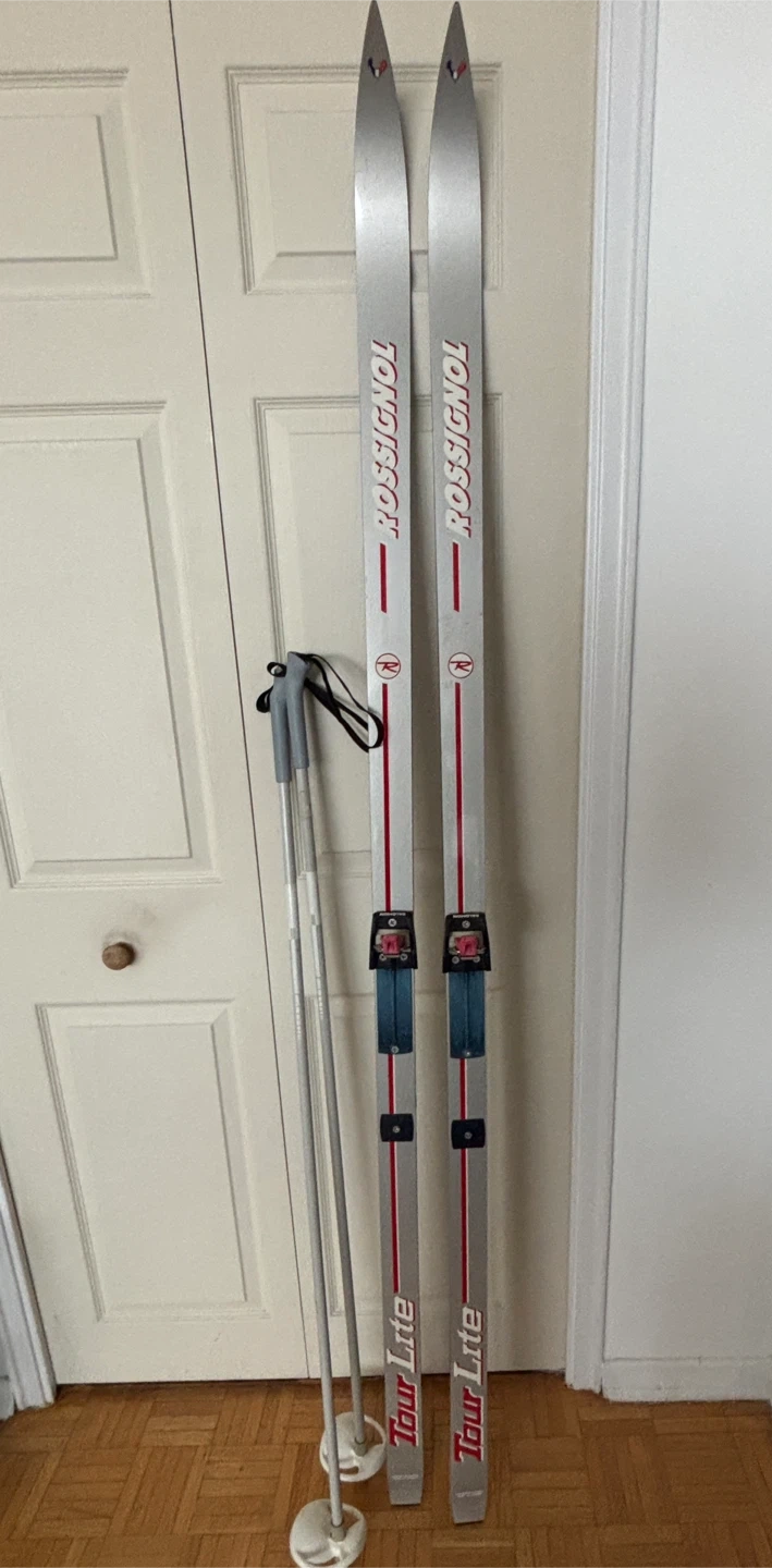 Rossignol cross country skis. Tour Lite model. Height 190 cm. Salomon bindings and poles included. Made in Canada.