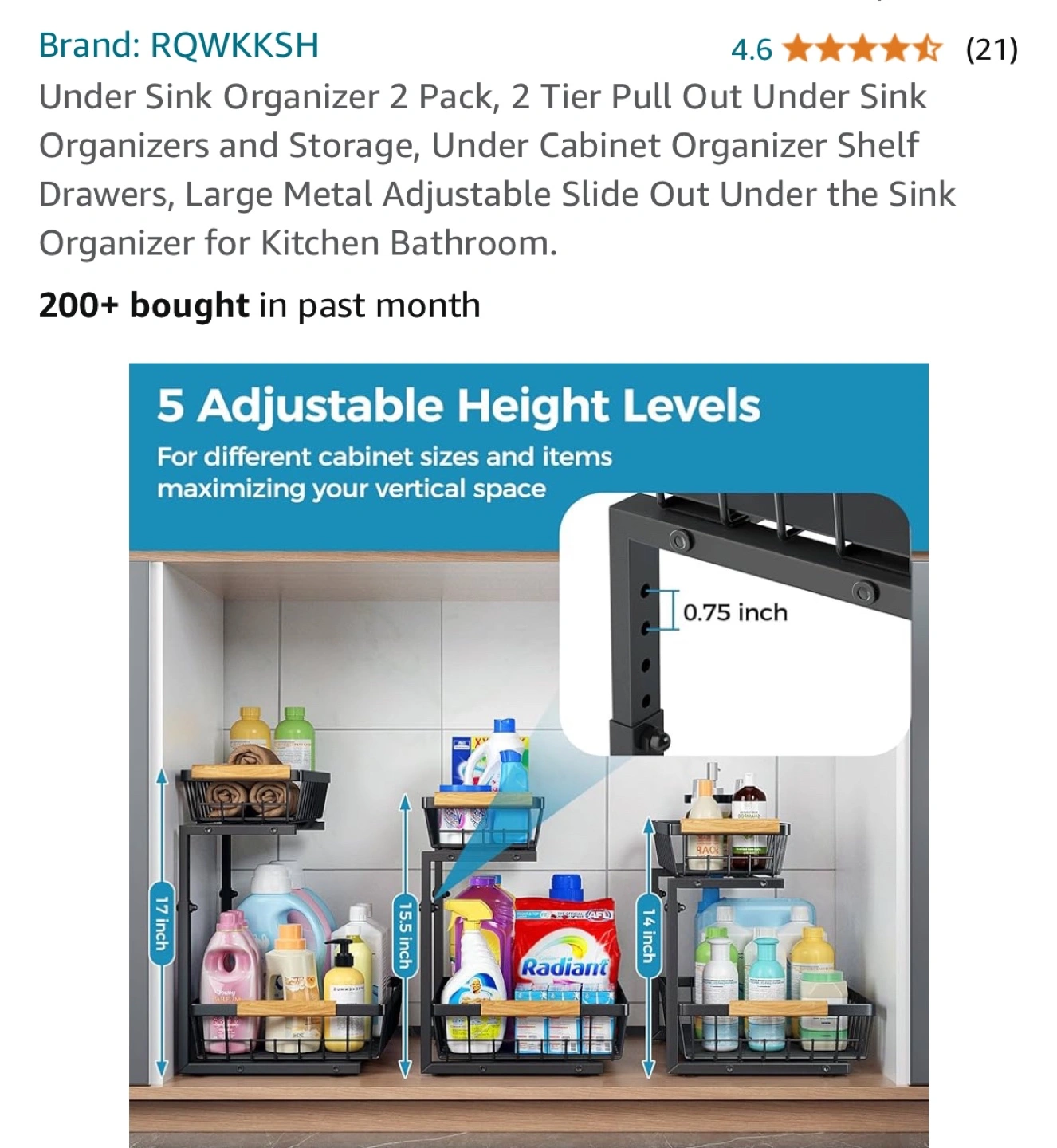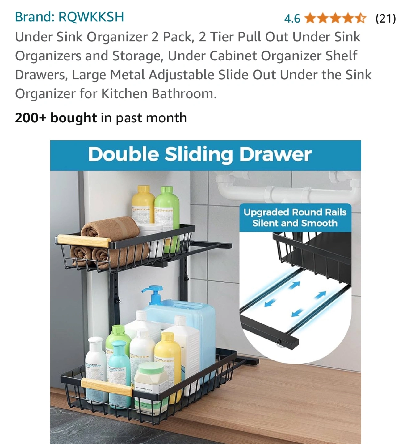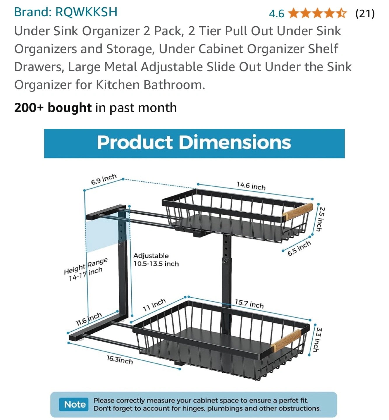 145Under sink organizer, 2 tier pull out under sink organizers and storage, under cabinet organizer shelf drawers, large metal adjustable slide out under the sink organizer for kitchen bathroom.
