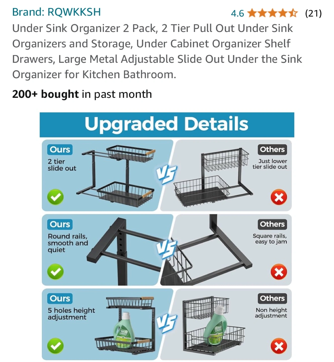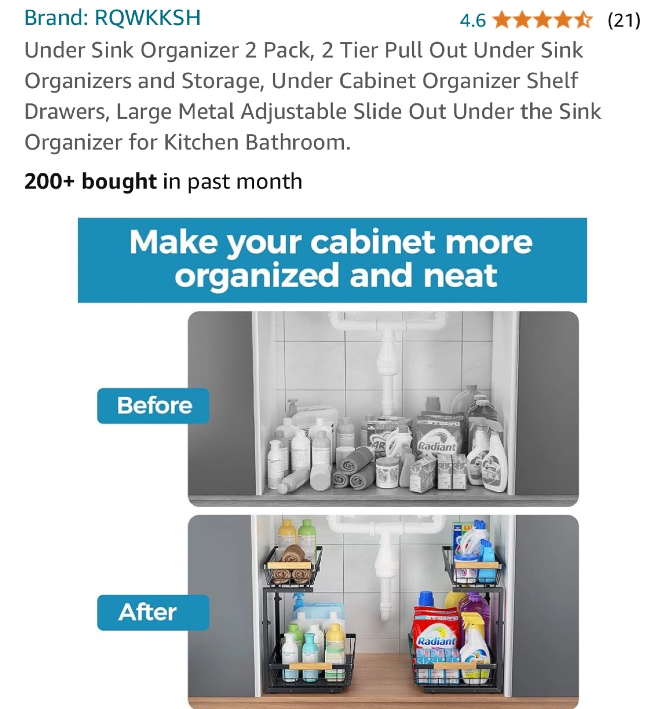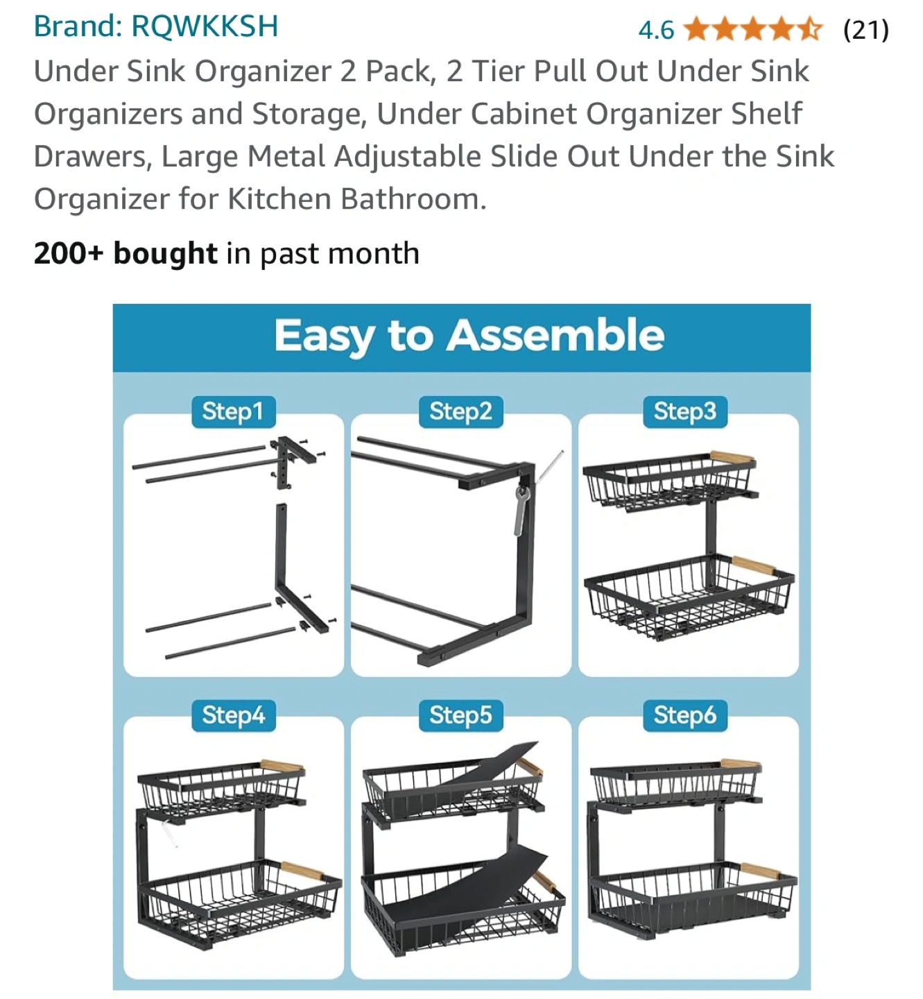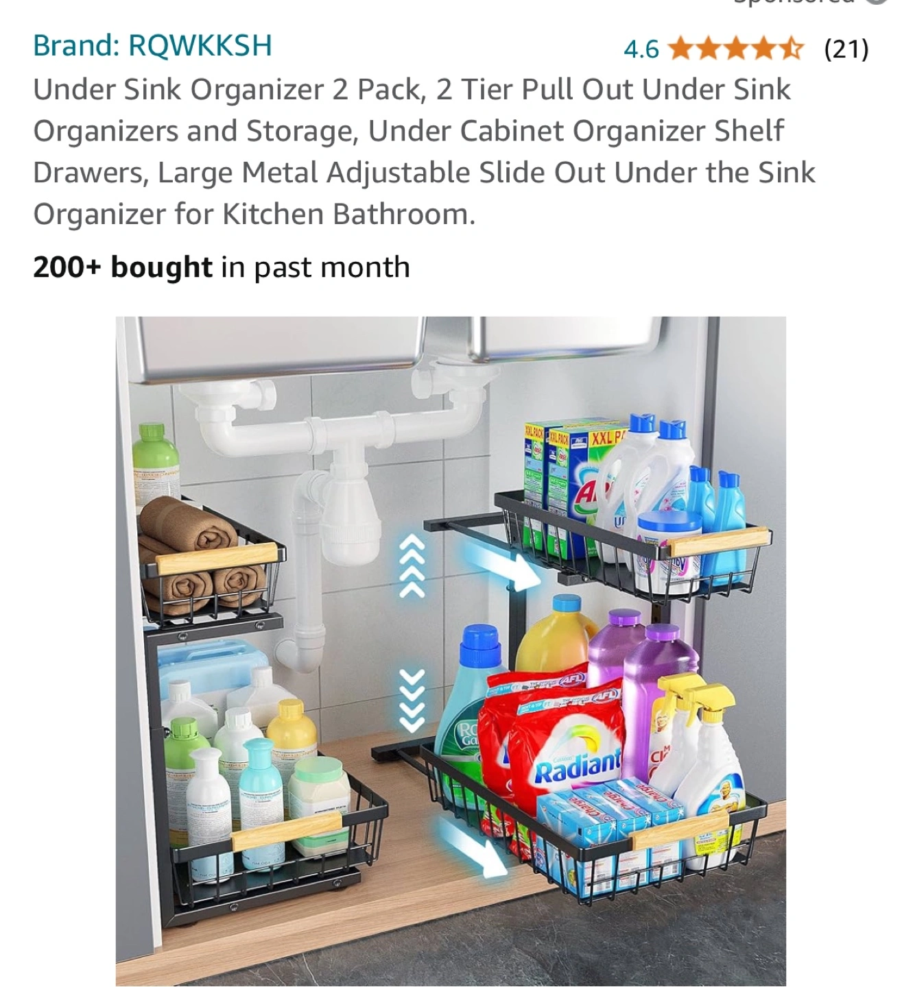 145Under sink organizer, 2 tier pull out under sink organizers and storage, under cabinet organizer shelf drawers, large metal adjustable slide out under the sink organizer for kitchen bathroom.