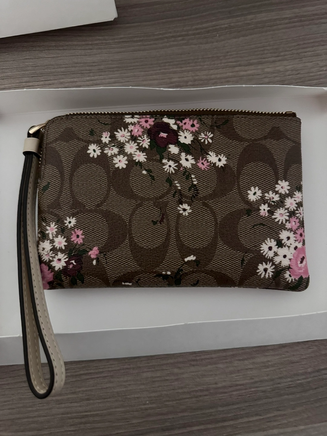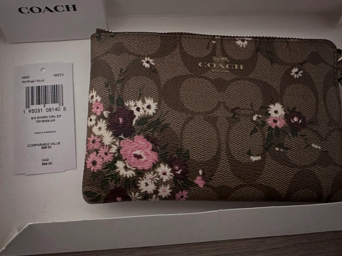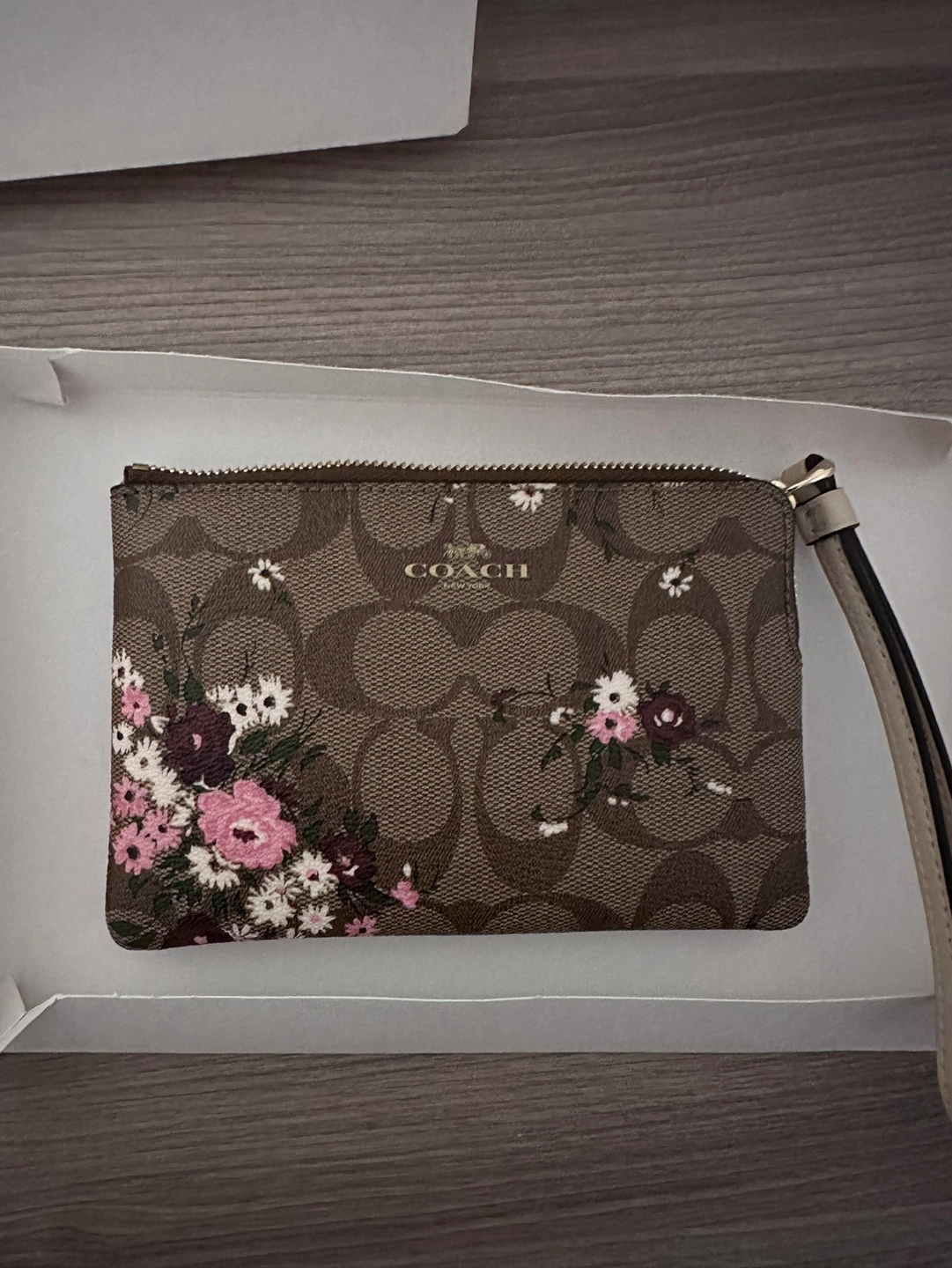 727Brand New Coach Signature Corner Zip Wristlet Crossgrain Leather, 2 credit card slots.