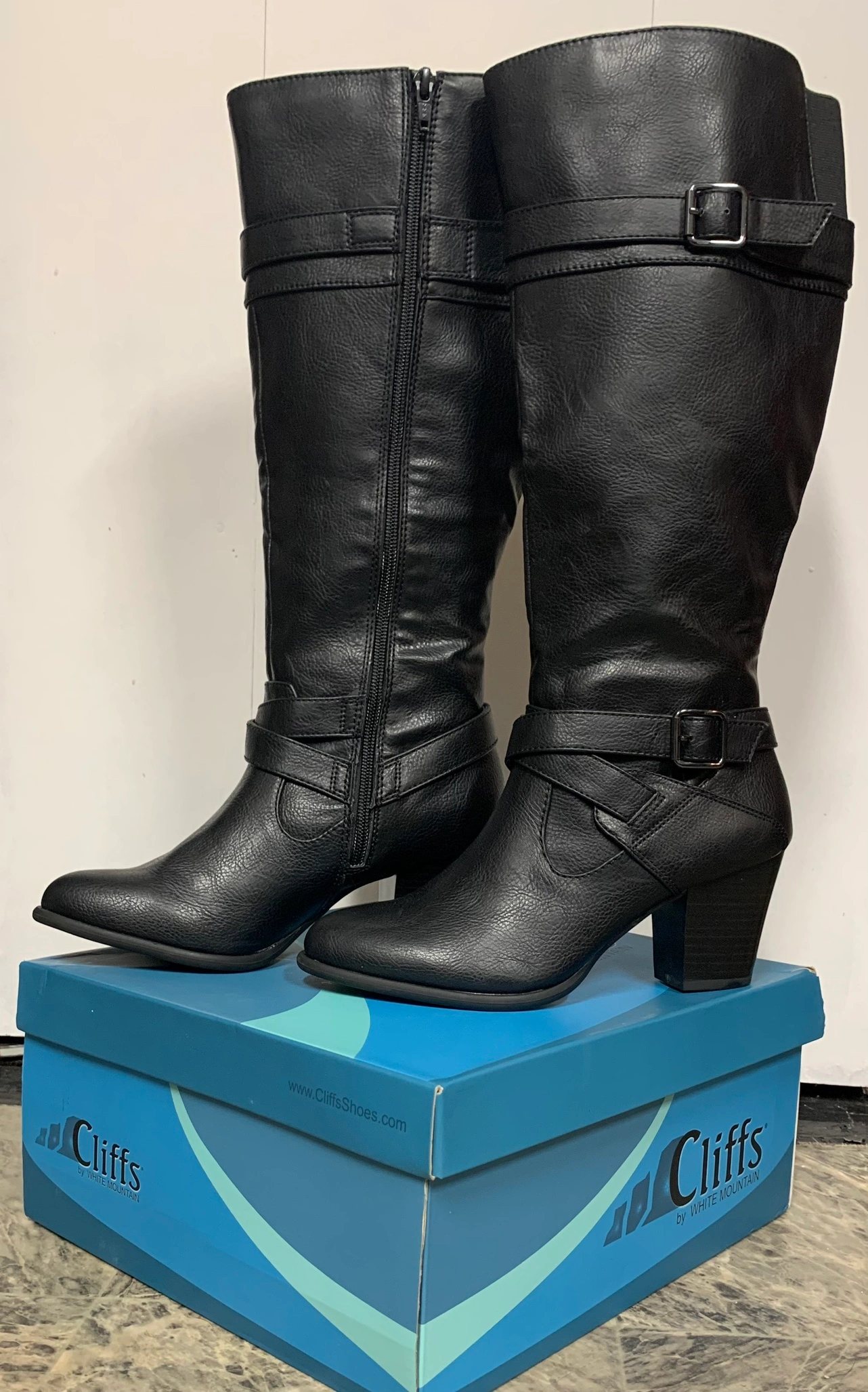 Description: Long Black Boot with Ankle Buckle strap and Calf strap design.