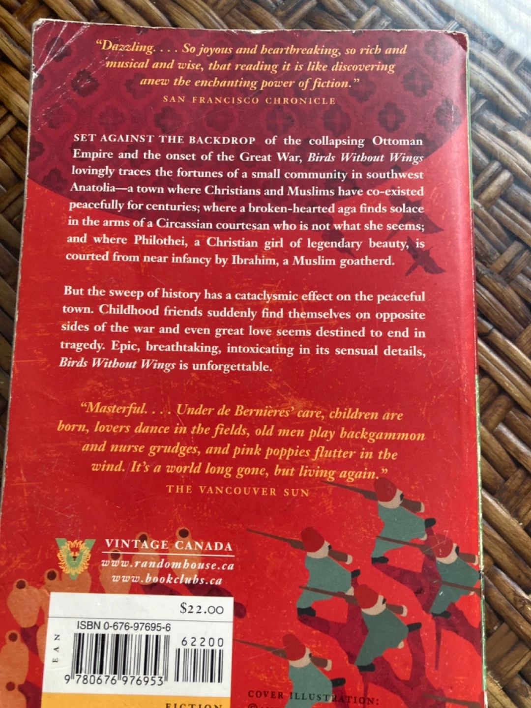 Paperback novel, set against the backdrop of the collapsing Ottoman Empire and the onset of the Great War. A rich and passionate story of love and war. A work of importance, beauty and compassion. Worn copy but definitely has a few more readings in it! Books are our treasures!