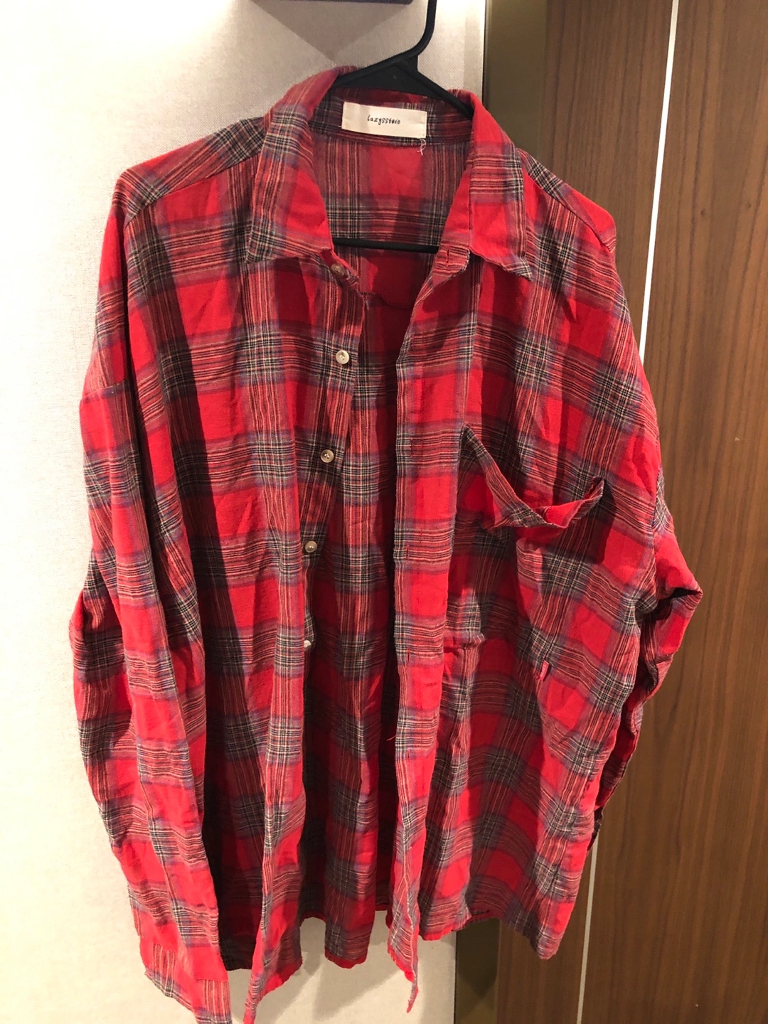 1000+Red plaid button-up shirt with a pocket. Long sleeves. Free shipping: If you spend more than 20 dollars in my list, you can get free shipping ( only in the old Toronto) Downtown pick up Cash only