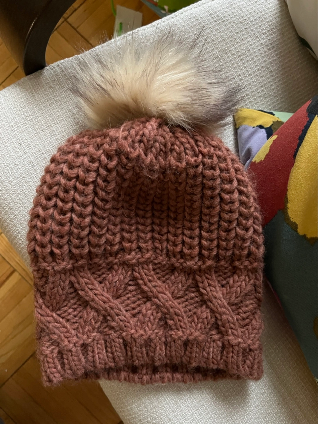 379Brown knit beanie with a faux fur pom pom. Made in Italy. Brand new never worn