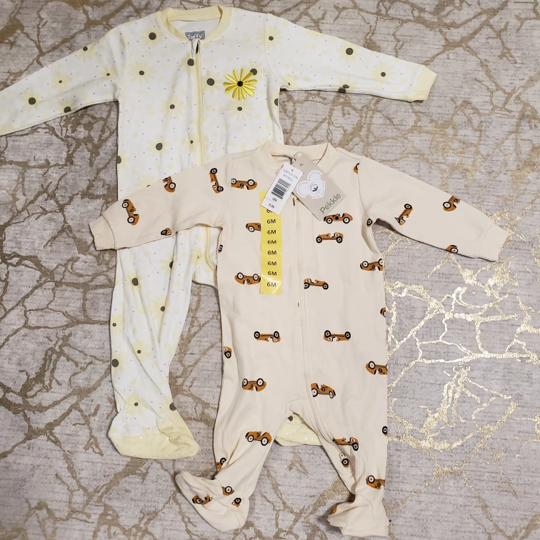 Brand new Two baby sleepers, one with a flower pattern and one with a car pattern.Never used with tag for sale only $5 for more info contact me anytime π π