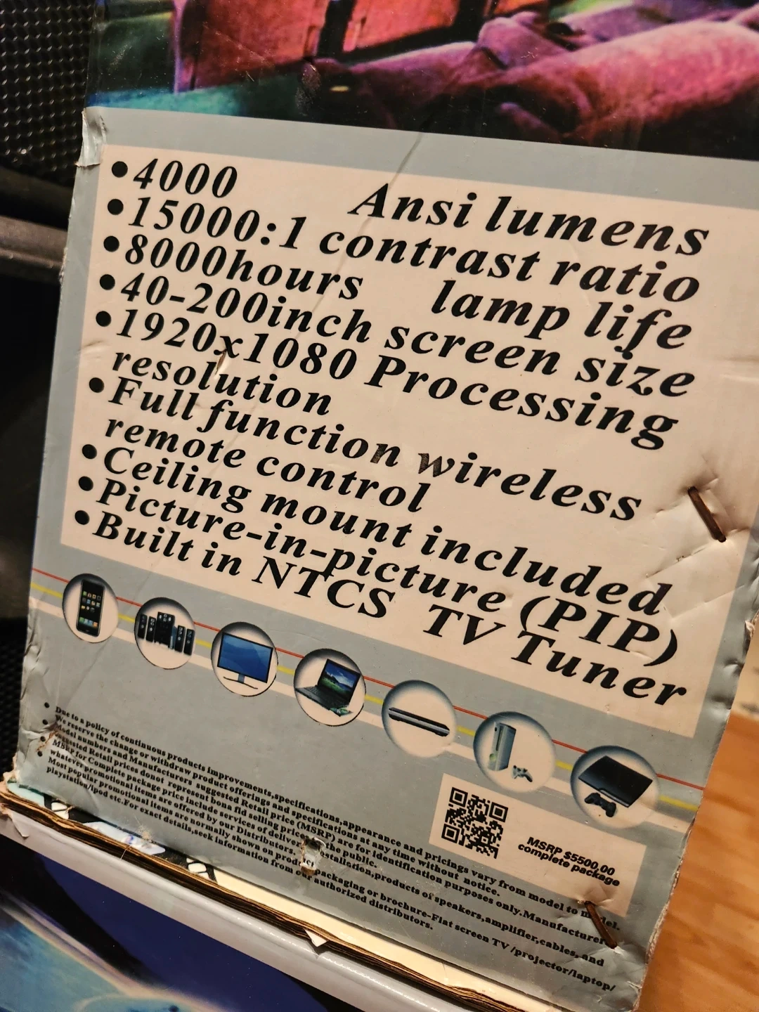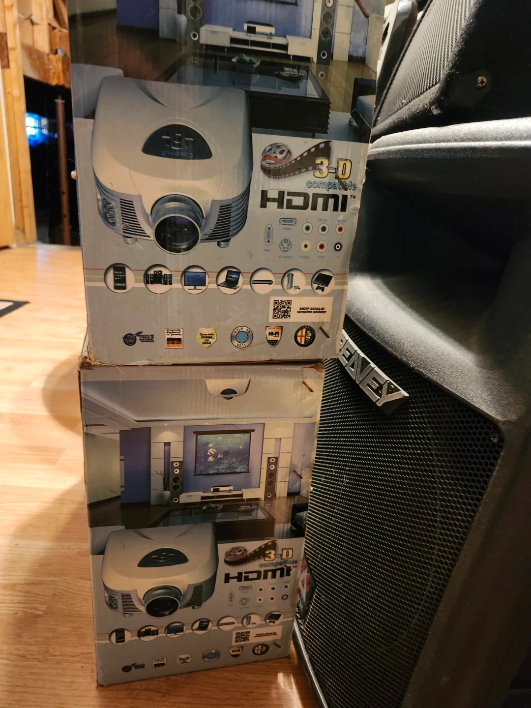Selling a Cinemaxx Elite HD3D Projection System, model 3DHdtv-601xe. It boasts 4000 Ansi Lumens, a 15000:1 contrast ratio, and a lamp life of 8000 hours. The screen size is 40-200 inches with a 1920x1080 resolution. Comes with a full-function wireless remote and built-in NTSC TV tuner. Original MSRP was original price $225