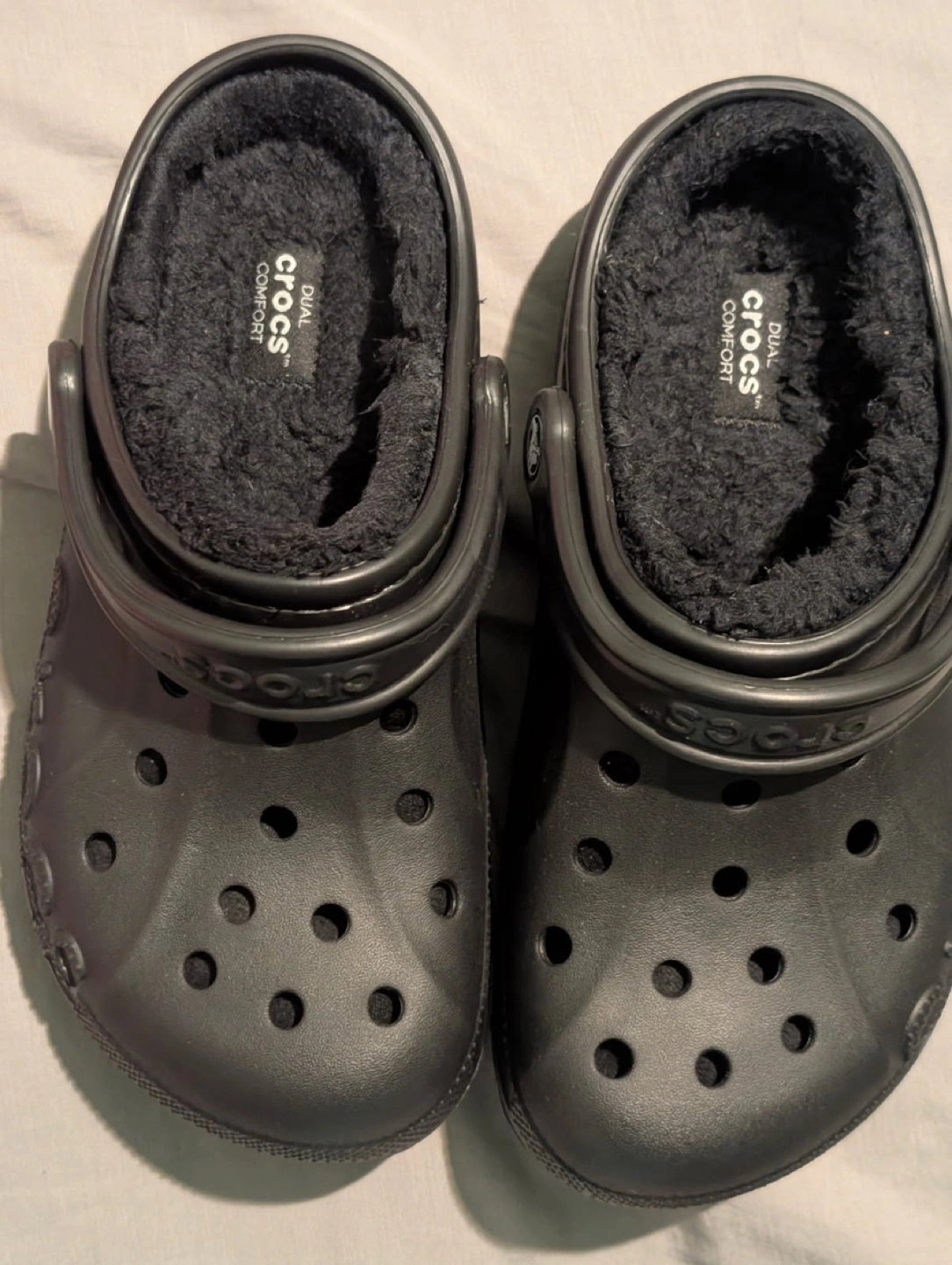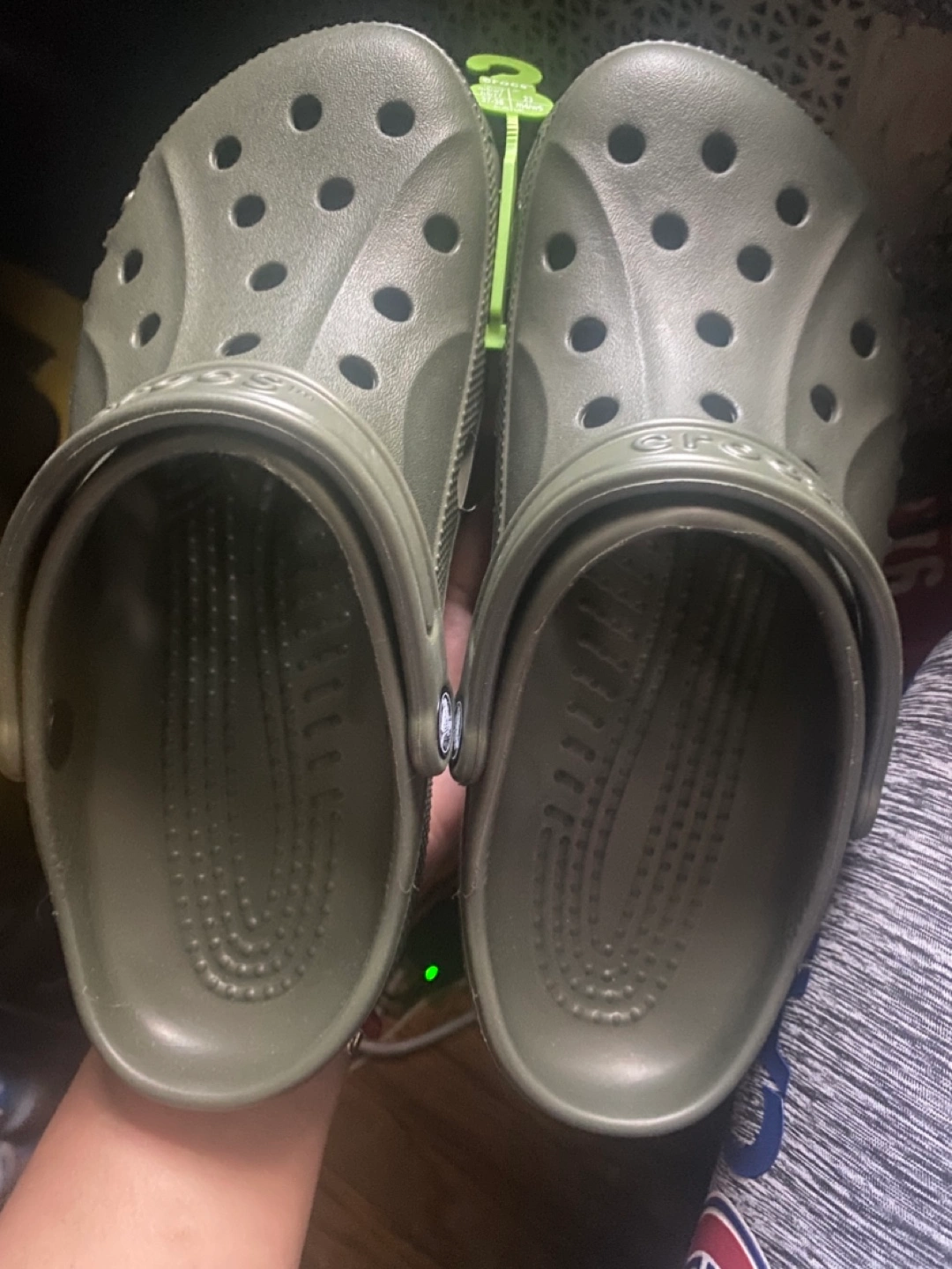 Black lined clogs with a strap. Dual comfort. Made . Size 7. Green baya crocs size 7 $35 each Also have a green size 9 in W for$35