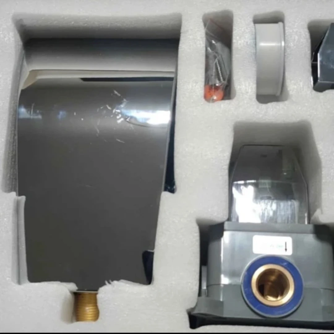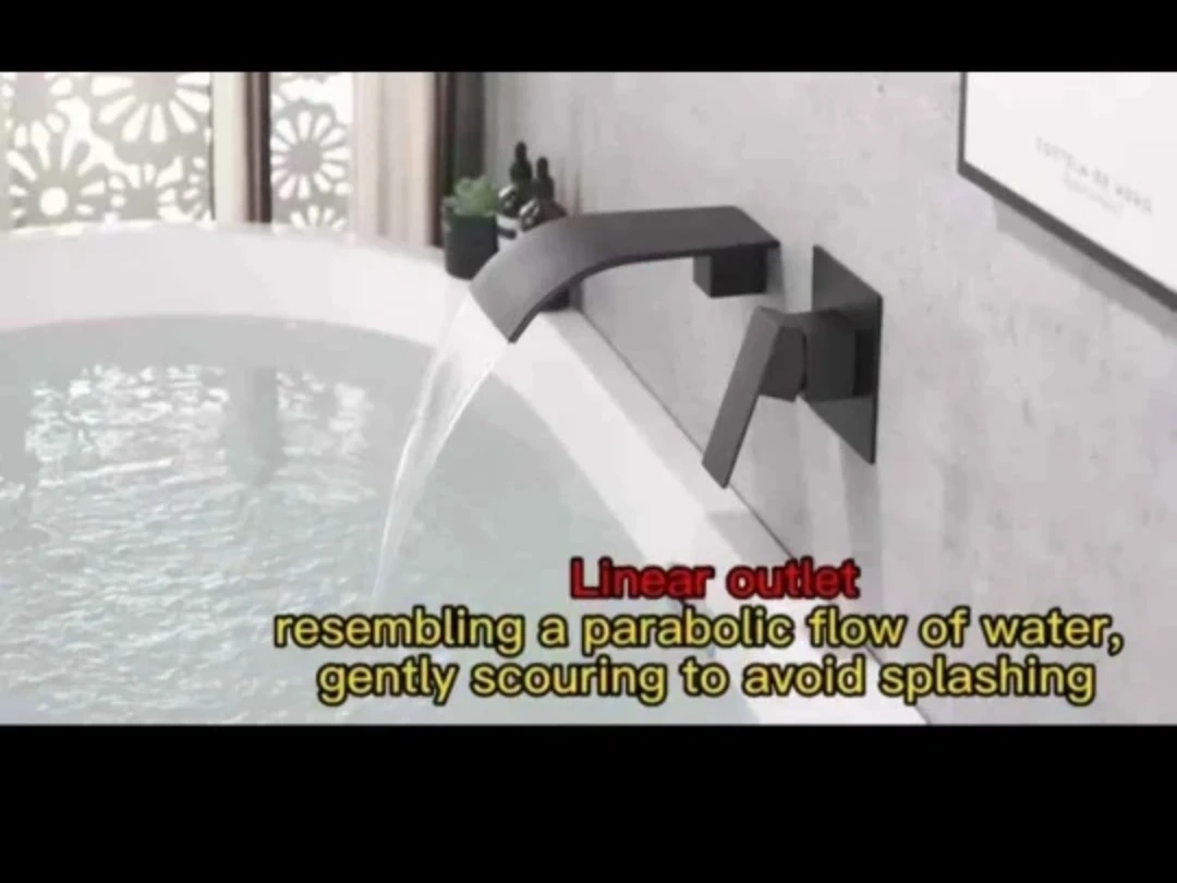 Single-handle wall-mounted bathtub faucet. Features a curved spout with a waterfall design. Easy to operate, with smooth mechanical engineering switch.