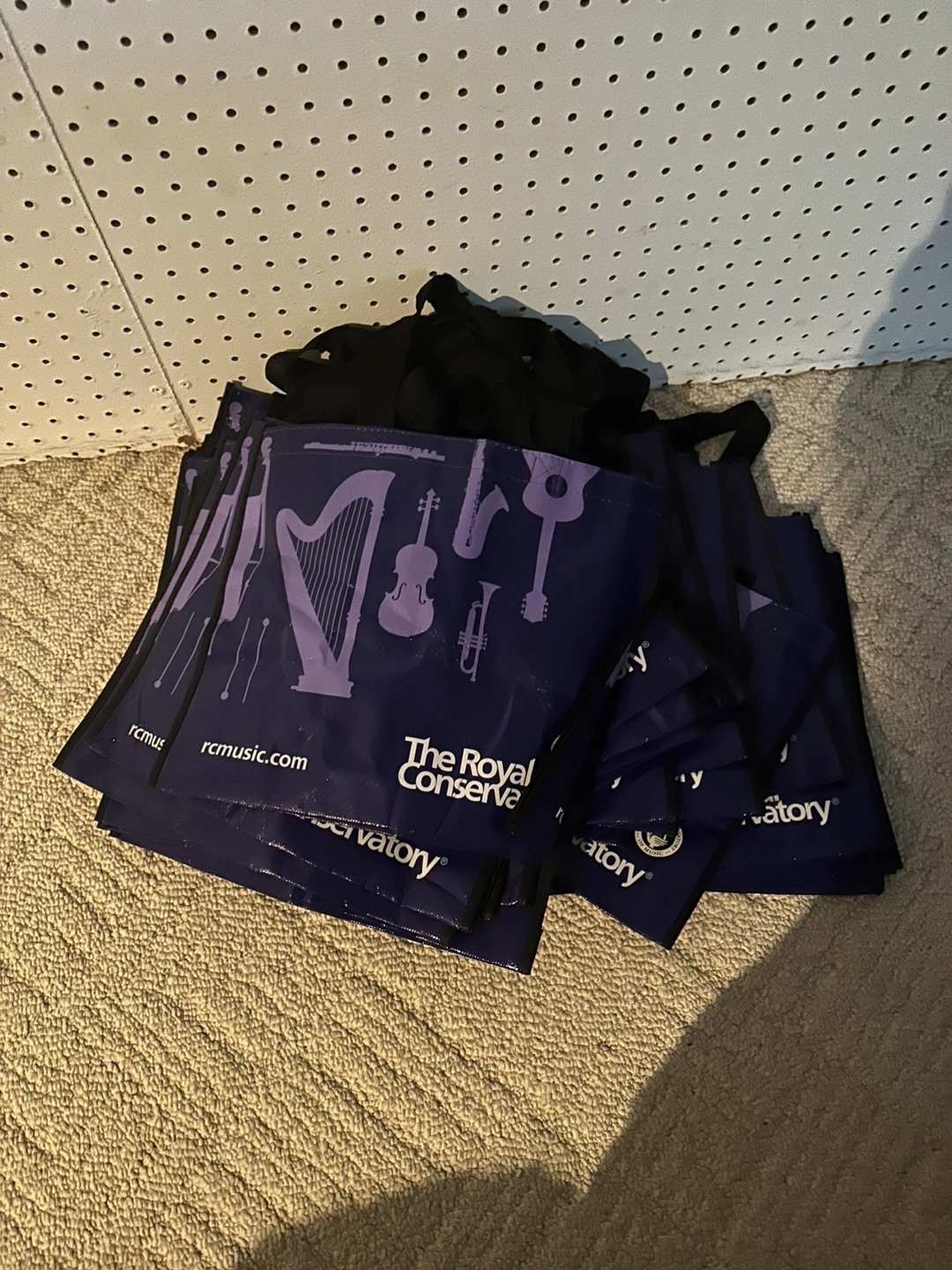 Reusable shopping bags with The Royal Conservatory logo and musical instruments design. Great for groceries, books, or other shopping. $.50 each $20 for all