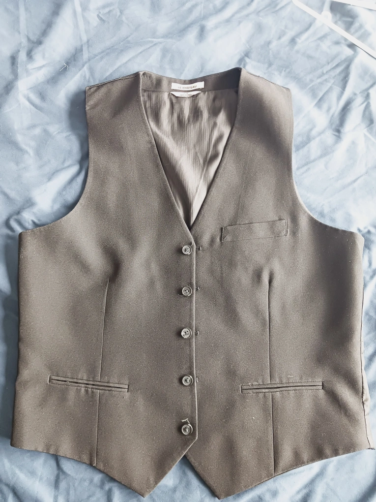 1000+๐ Welcome. Questions?... let's chat now โคต๏ธ ๐Thanks for checking + liking + sharing. - - - - ๐ Click 'Make Offer' below + ask about bundle deals too (awesome items added frequently) = = = =ย ๐ค If your desired item is on 'reserve',ย ย ย ย ย ย ย ย do click status change notification Paul Item Description: ----------------------------- Black, fully lined vest with pinstripe back, great for party or office. Adjustable back strap. Two slit pockets + puff pocket. Five button closure.