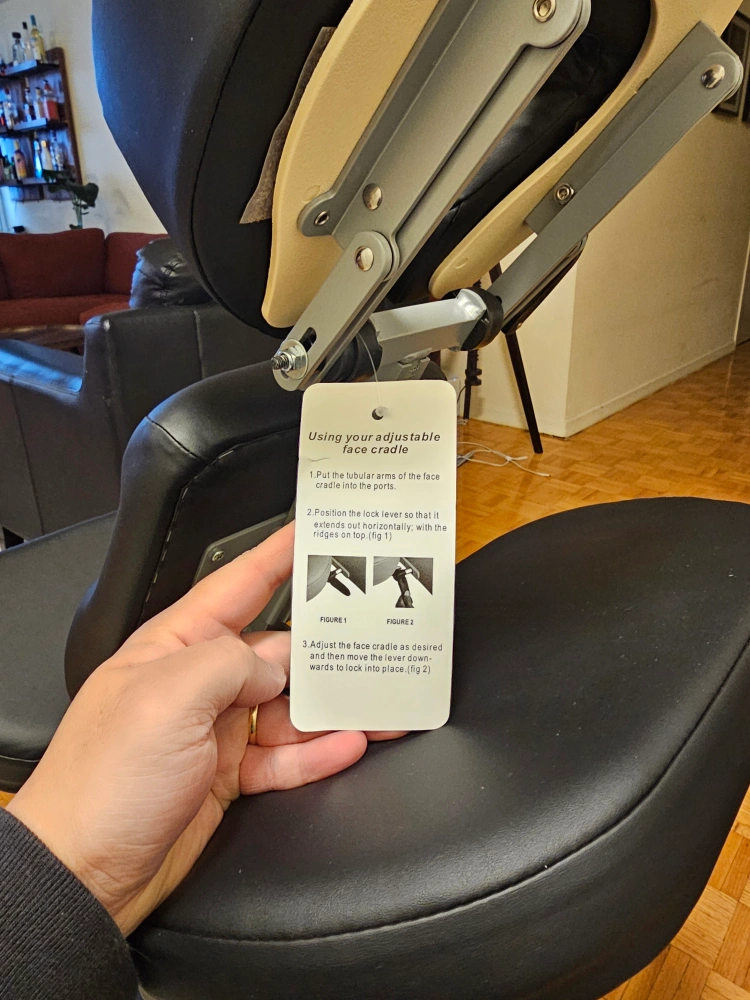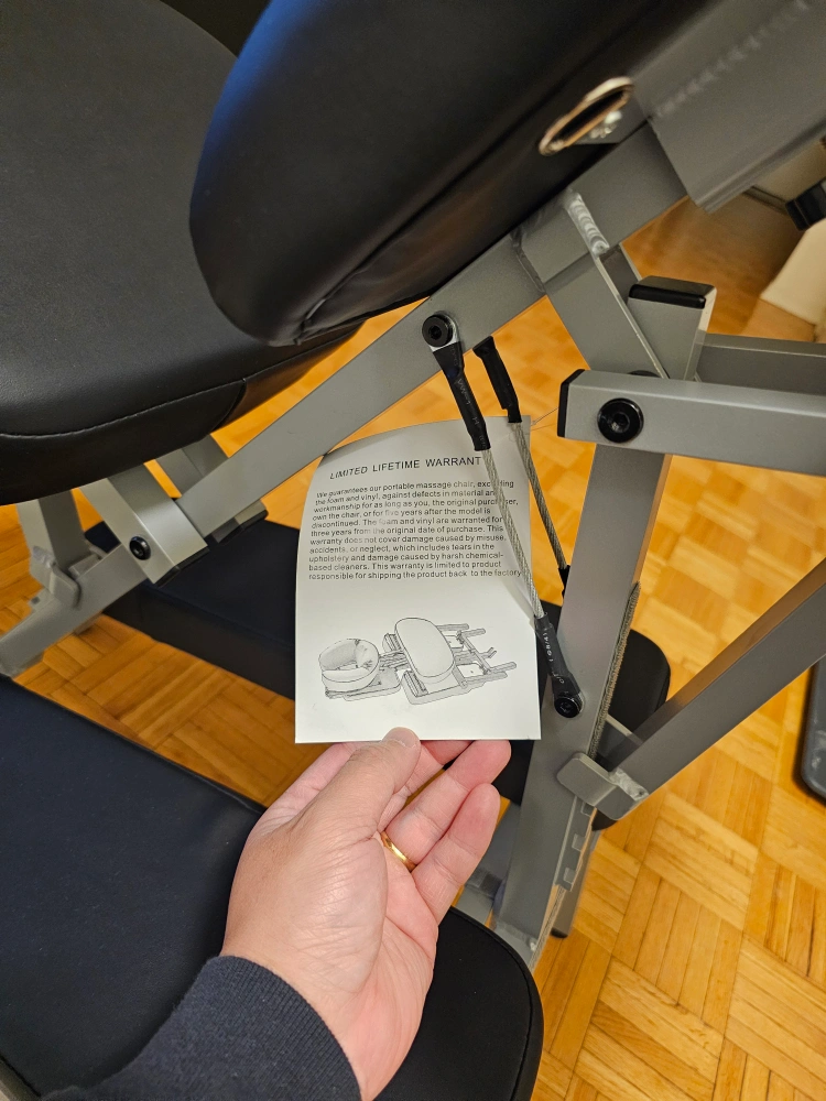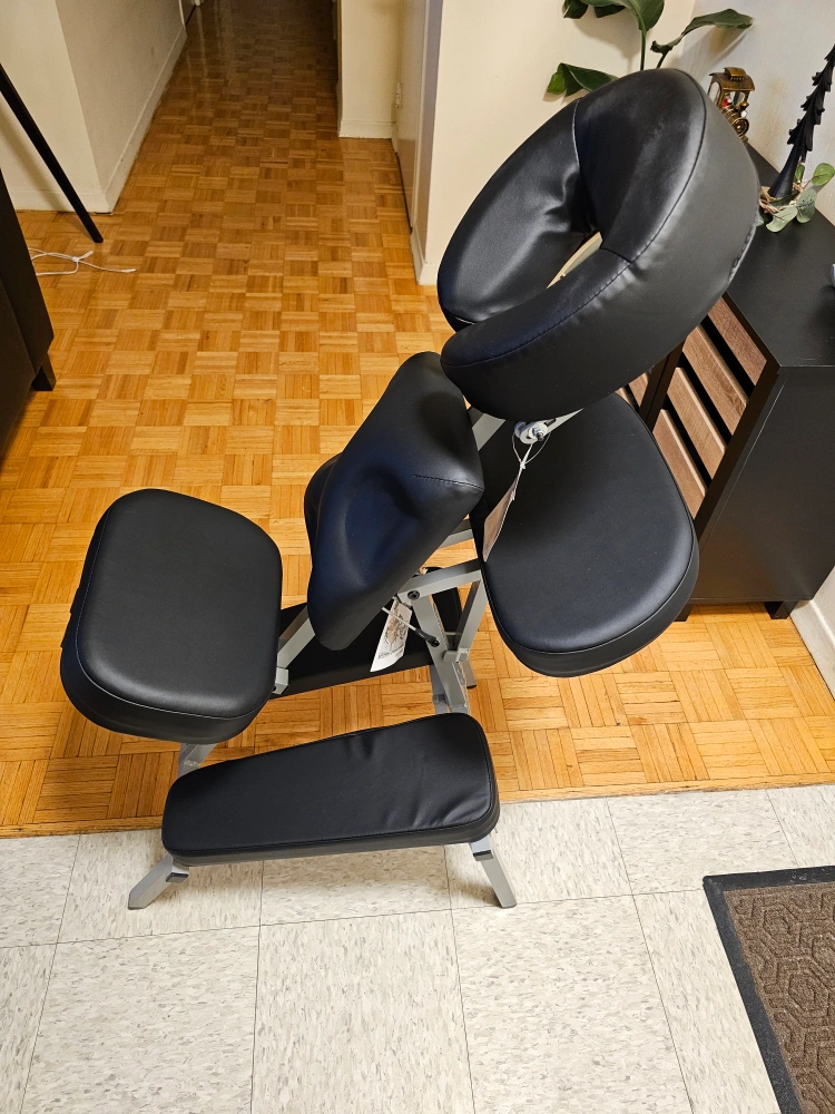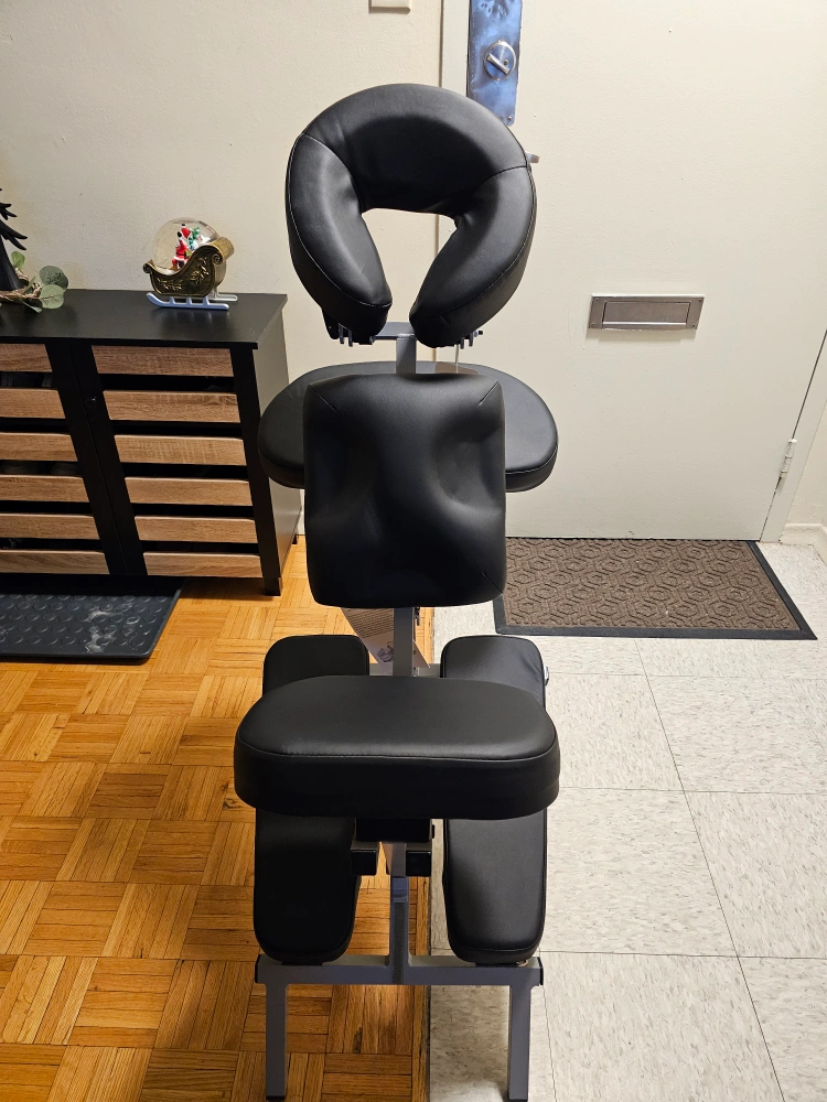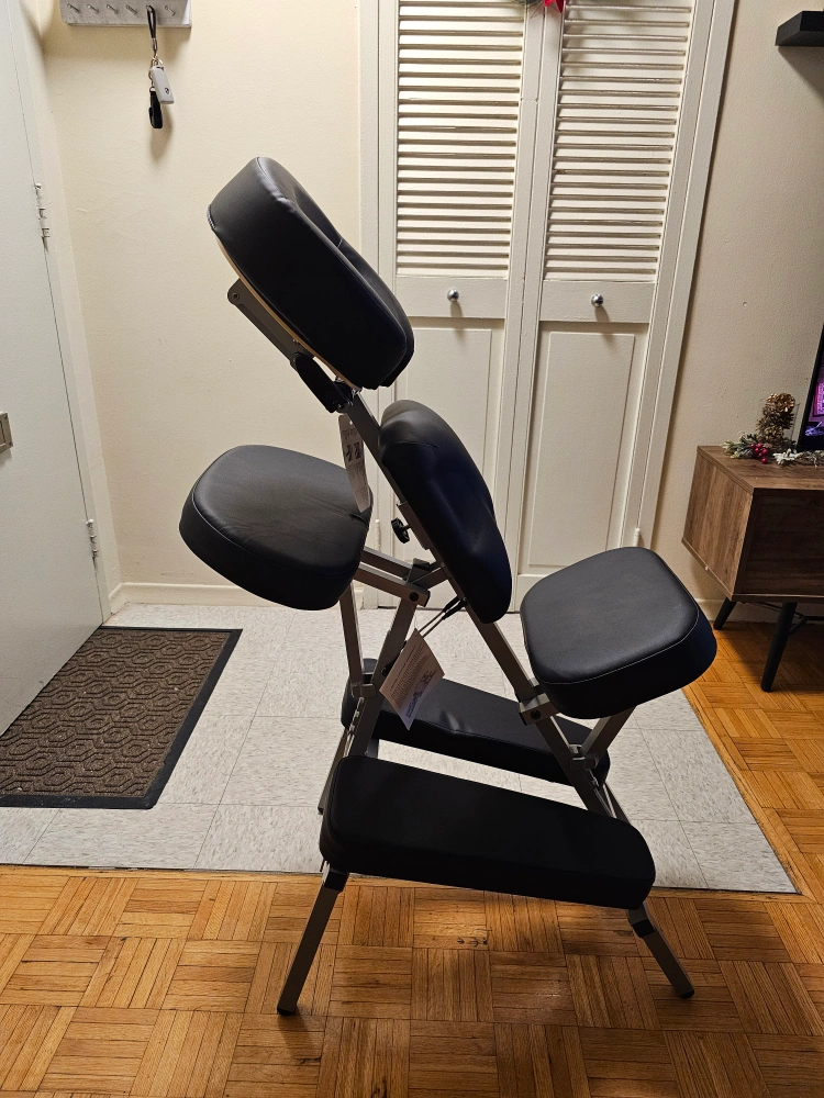 150Black massage chair, comes with instructions for assembly, in good condition, foldable, easy to transport with bag