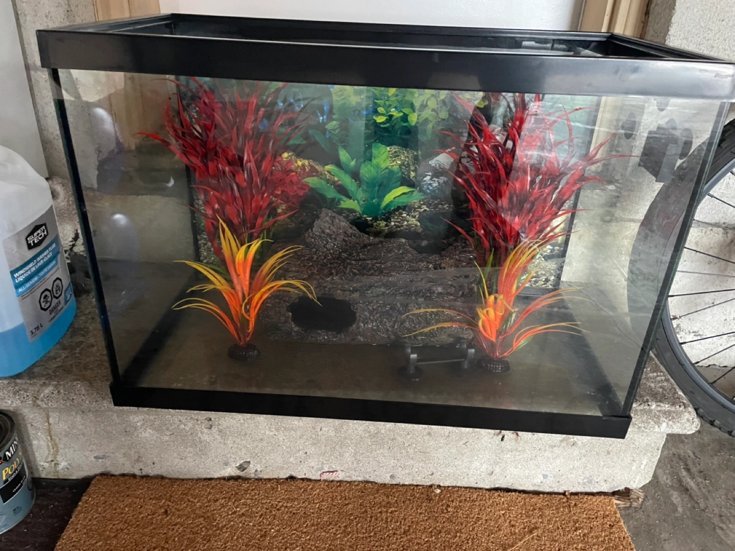 Black rectangular aquarium tank with black trim. Includes