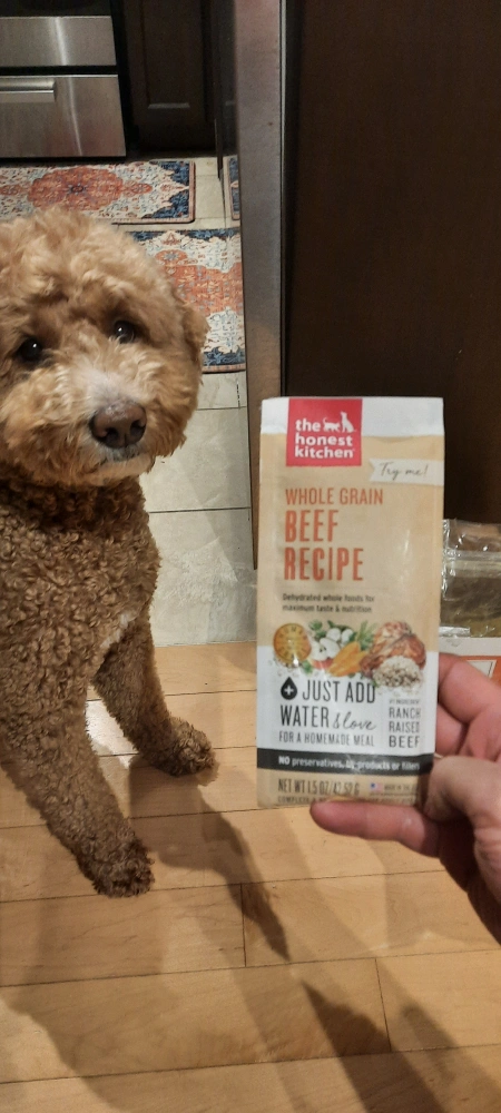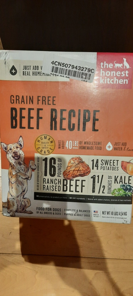 Bought this for my dog who loved the first couple of samples. So I ended up buying a box online on short sale (he is not included in the sale) But he has stopped liking and eating it. Since it's on short date expiring in Feb 2025. I can't return it. It's dehydrated 10LBS and you just need to add water to get over 40LBS of high quality dog food! Retails for over $160+ at Rens. https://www.renspets.com/products/the-honest-kitchen-grain-free-beef-recipe?sku=138694