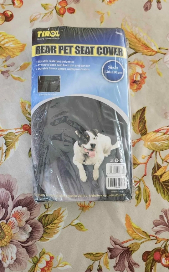 Scratch resistant polyester. Protects back seat from dirt and dander. Durable heavy gauge waterproof fabric. Adjustable straps. 130 x 101 cm