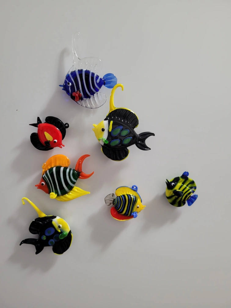 1000+These colourful, glass fish were repurposed from an aquarium accessory. I used good quality magnets to glue to the fish and they can easily support notes and paper on your fridge. I'm in the midst of redecorating and I'm shaking up my fridge magnets to better match my new direction. Some have a few chips or missing fins (I dropped them). However, they are cute (imo) and fuctional. #freecycle.