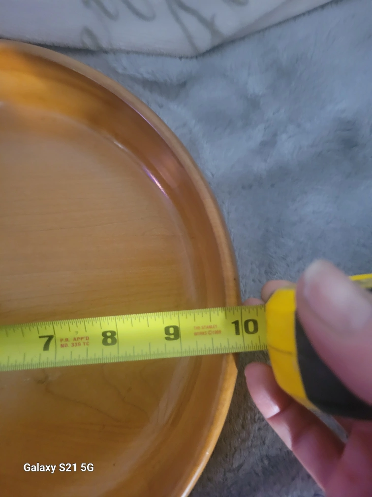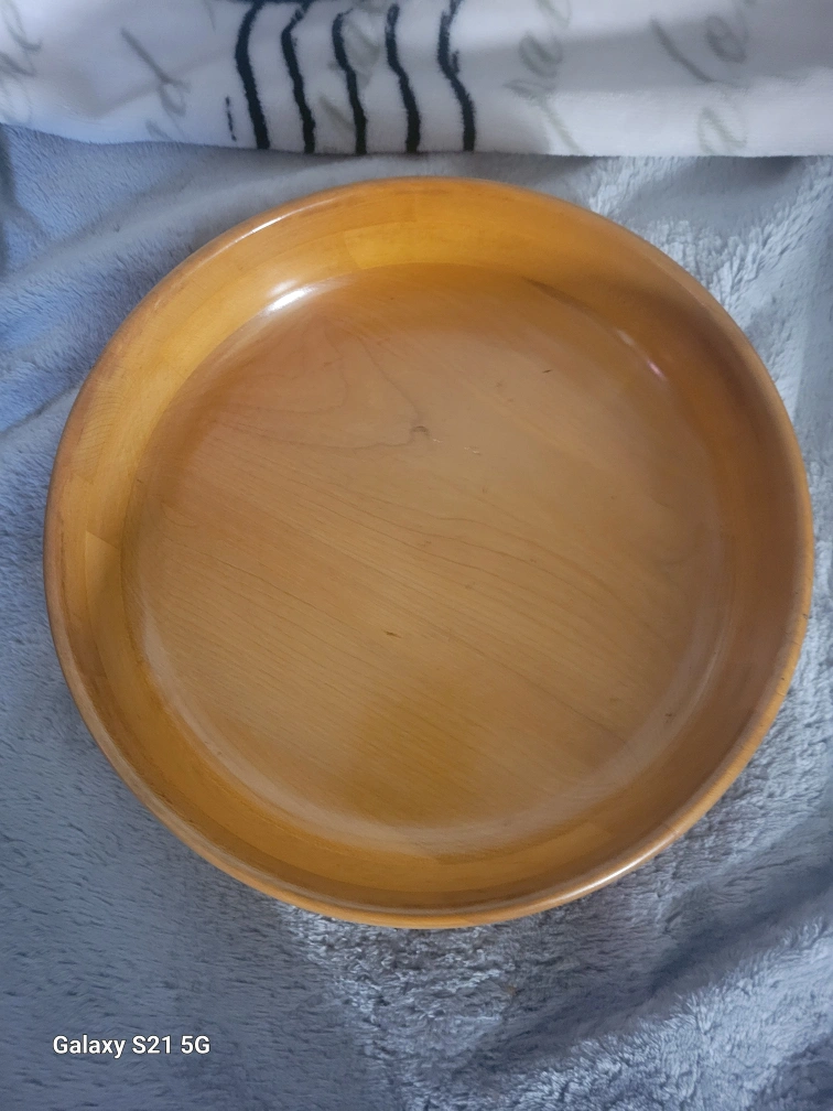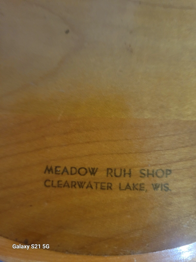 Vintage Wooden bowl with a bakelite finish. Made by Meadow Ruh Shop. Measures approximately 10 inches in diameter.