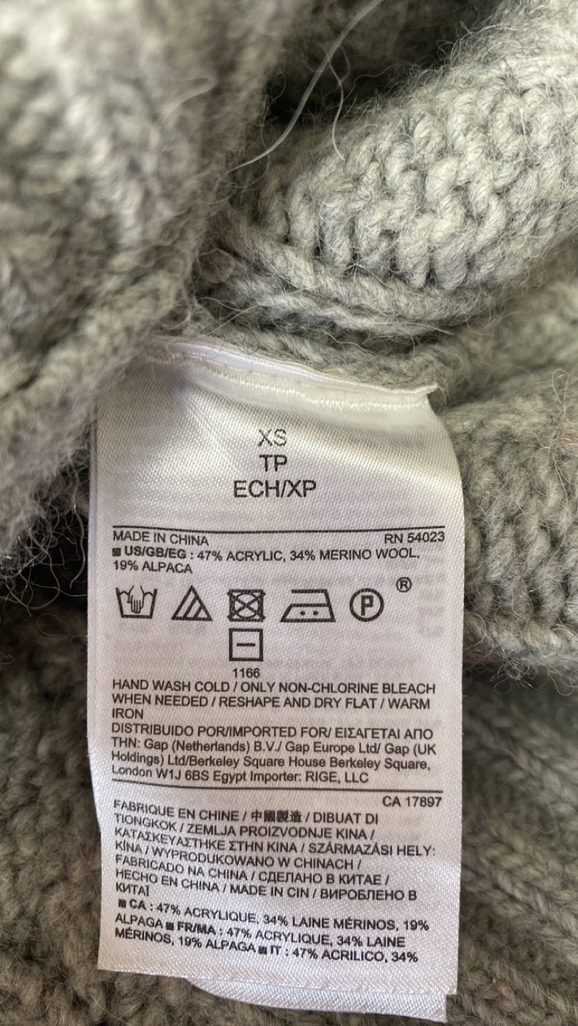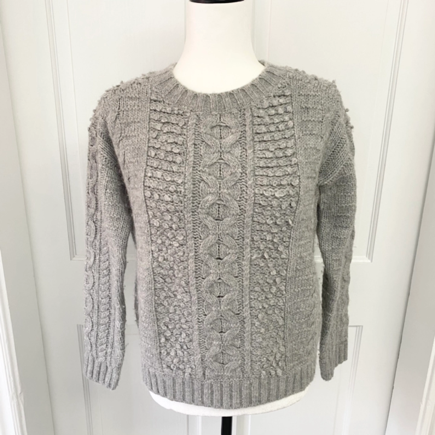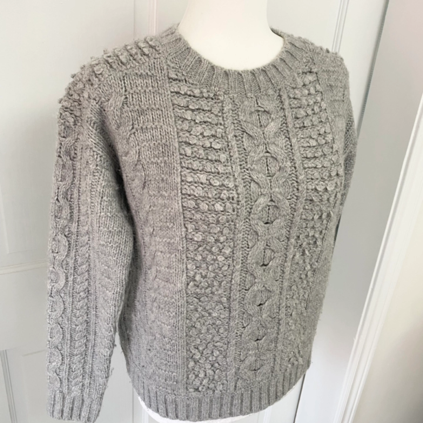 Grey cable knit sweater. Long sleeves. Made of Italian yarn.