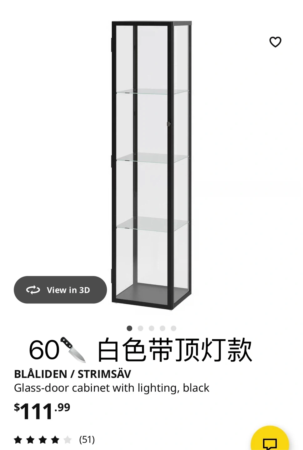 Buy & SellIKEA BLÅLIDEN / STRIMSÄV Glass-door cabinet with lighting, blackIKEA BLÅLIDEN / STRIMSÄV Glass-door cabinet with lighting, black$60This is the BLÅLIDEN / STRIMSÄV glass-door cabinet with lighting. It's black and has multiple glass shelves. Perfect for displaying your collectibles!WHERE TO MEETCheck LocationView MapSELLERverifiedSherryDowntown Toronto19213 reviews0 chats·0 favorites·10 viewsSEND CHAT TO SELLERHi Sherry! I’m interested in your listing.Hi Sherry! I’m interested in your listing.Get the Karrot app to chatSign In to chat