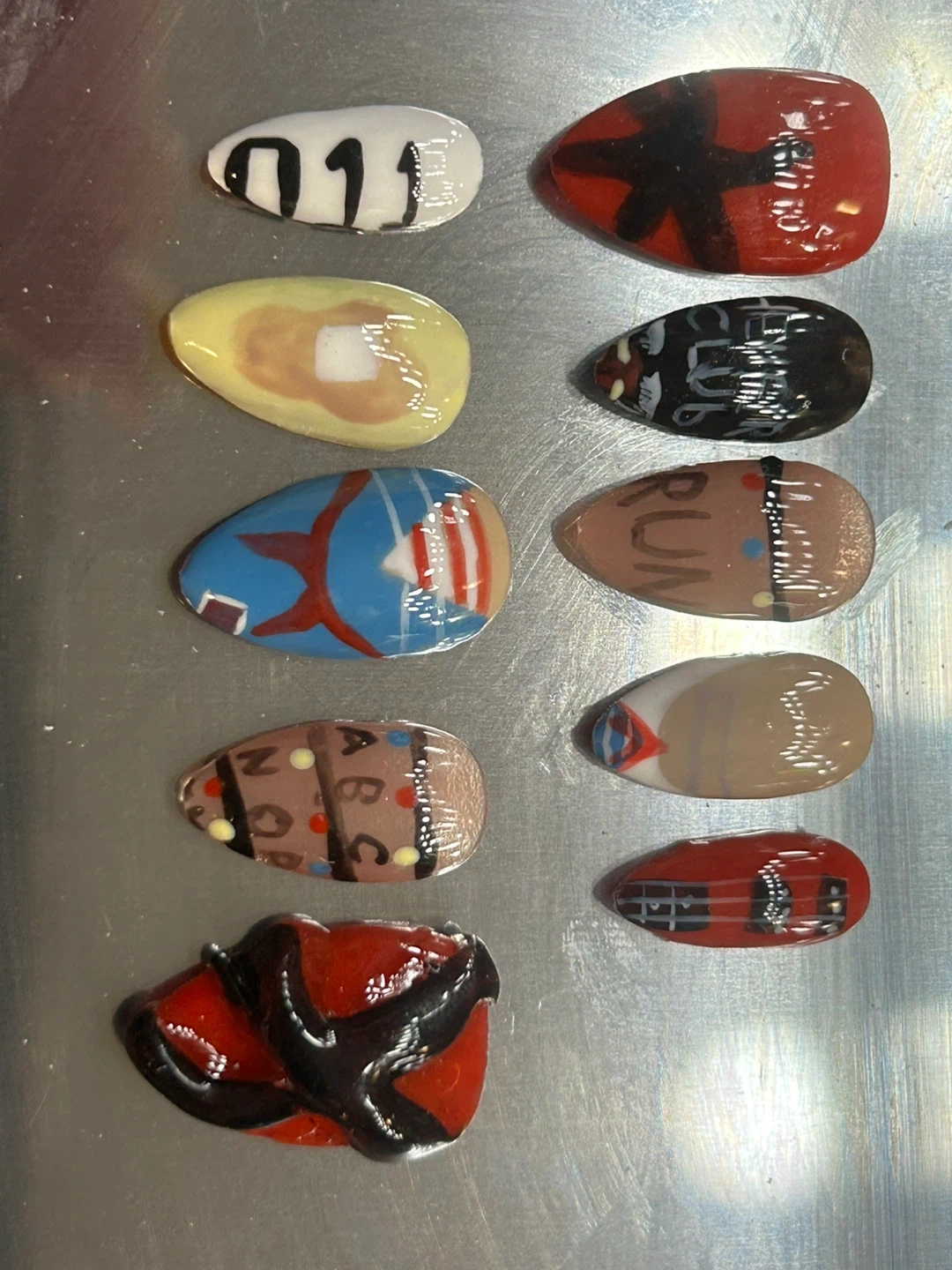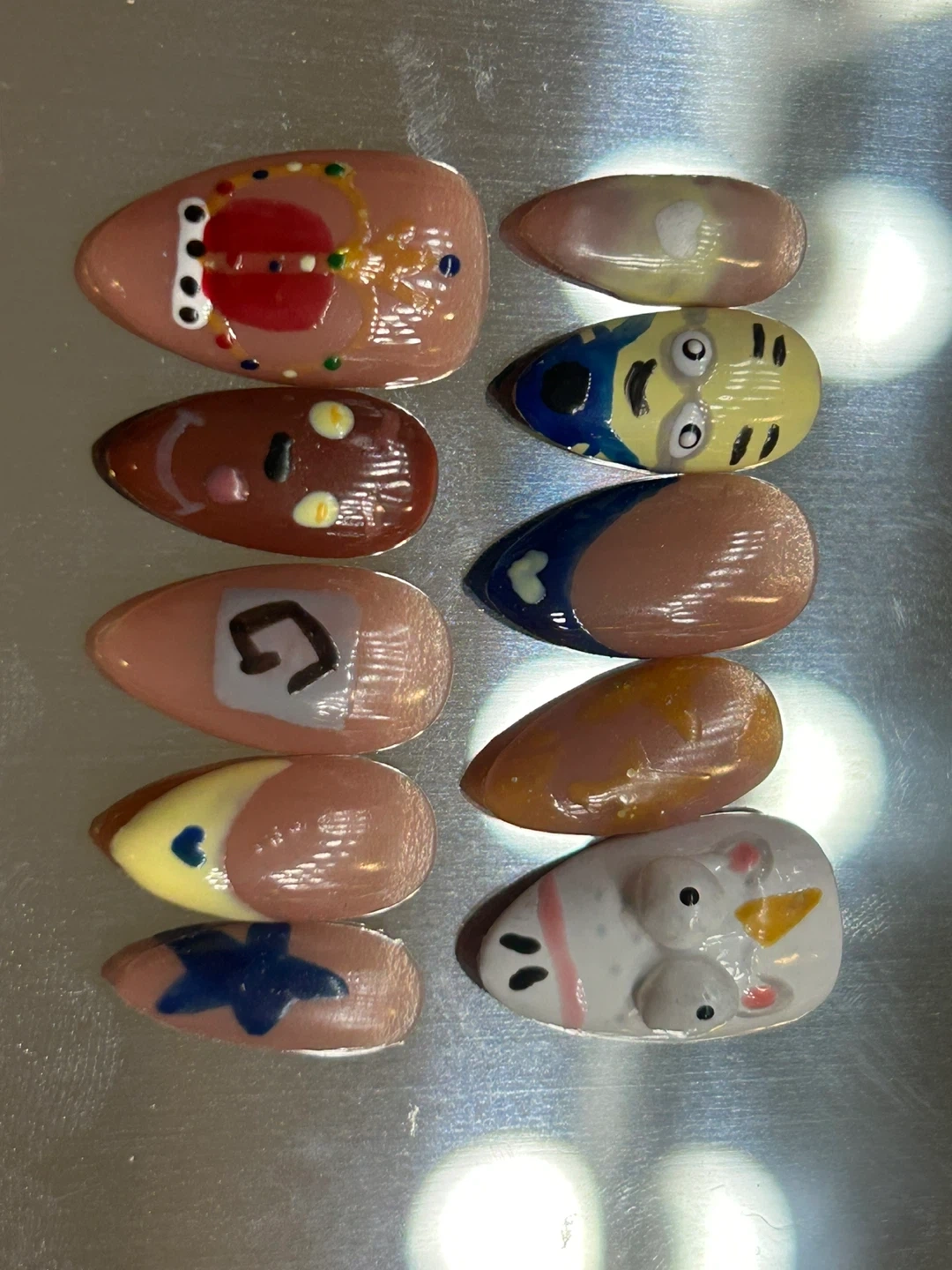 Selling a set of press on nails with various designs. Perfect for adding a fun touch to your look!