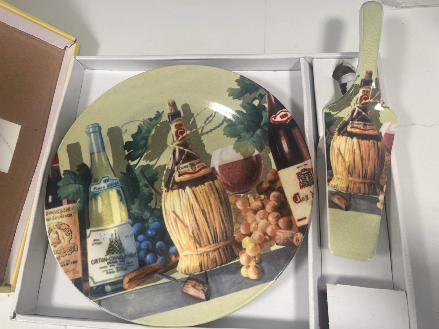 1000+2 piece cake set with server. Plate has a wine and grape theme. 10.5”, never used, still in box. Available for pickup in Markland Wood.