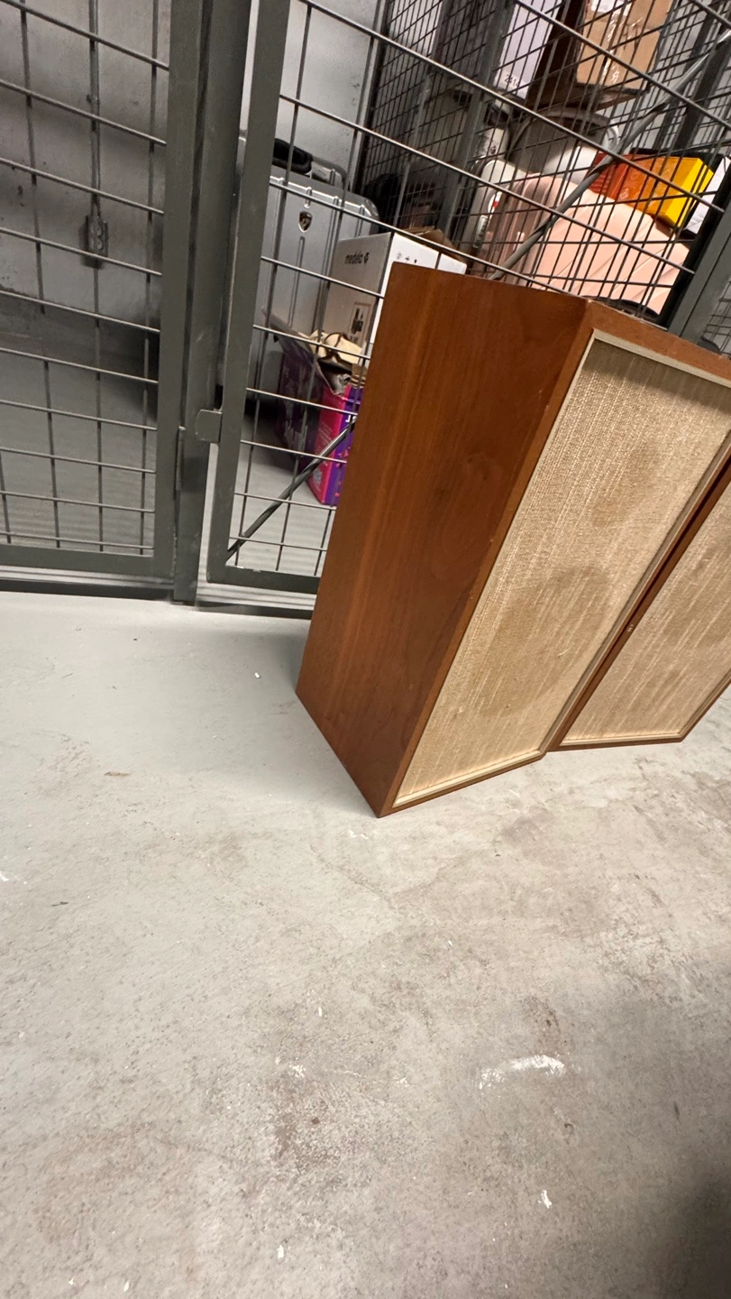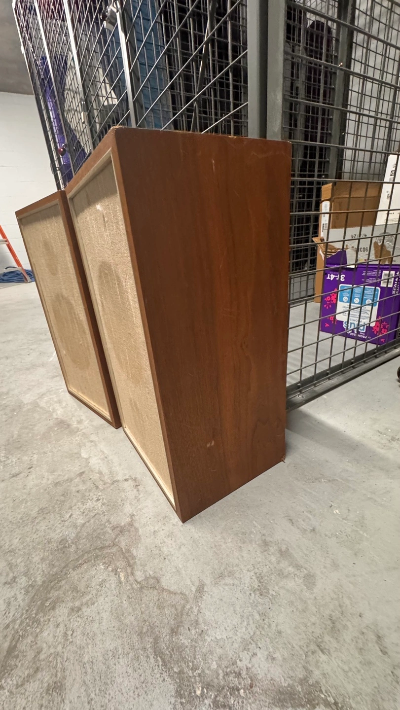 Vintage wooden speakers with a fabric front panel. A great choice for retro style enthusiasts or restoration projects. Condition as shown in the photos. Free to give away. Pickup only.