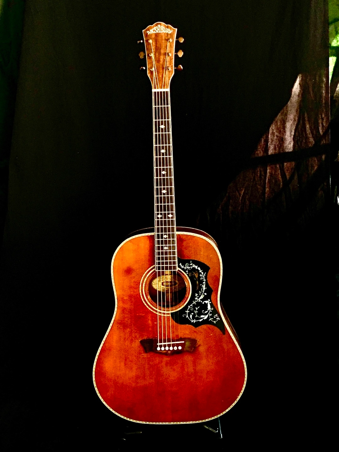 The case is a distinct coffin shape and is original equipment from Washburn.