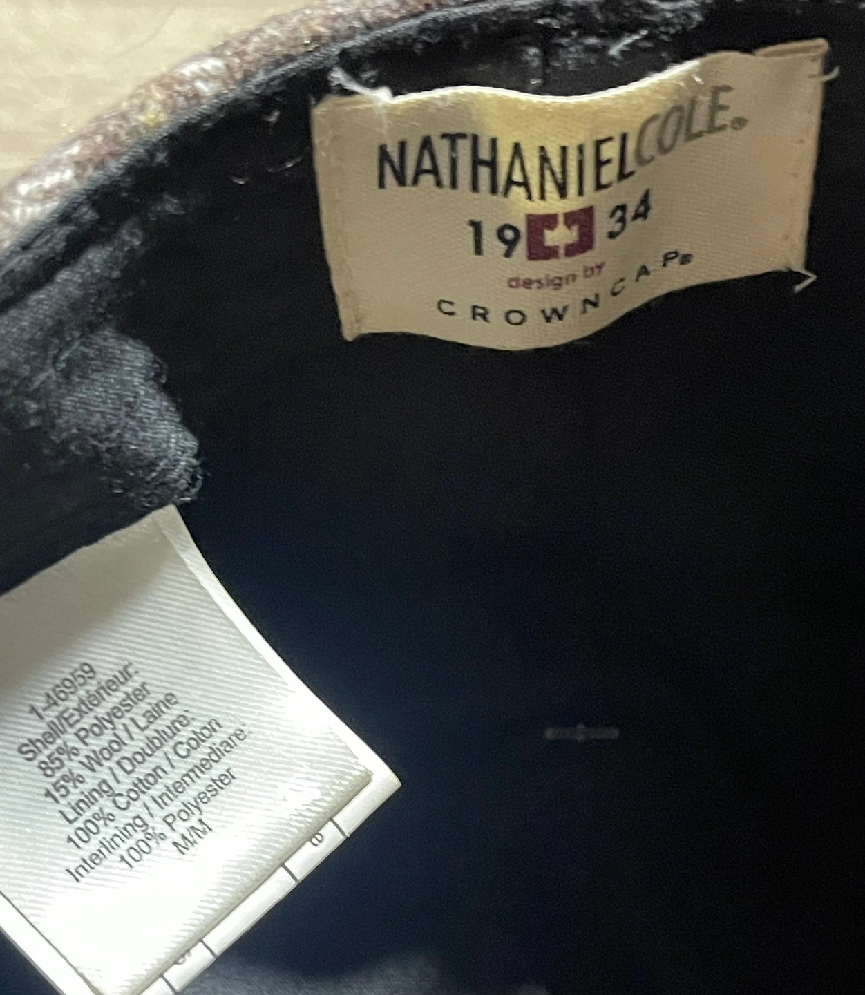 (NEW) Nathaniel Cole 1923-34 Brown Plaid Newsboy Cap